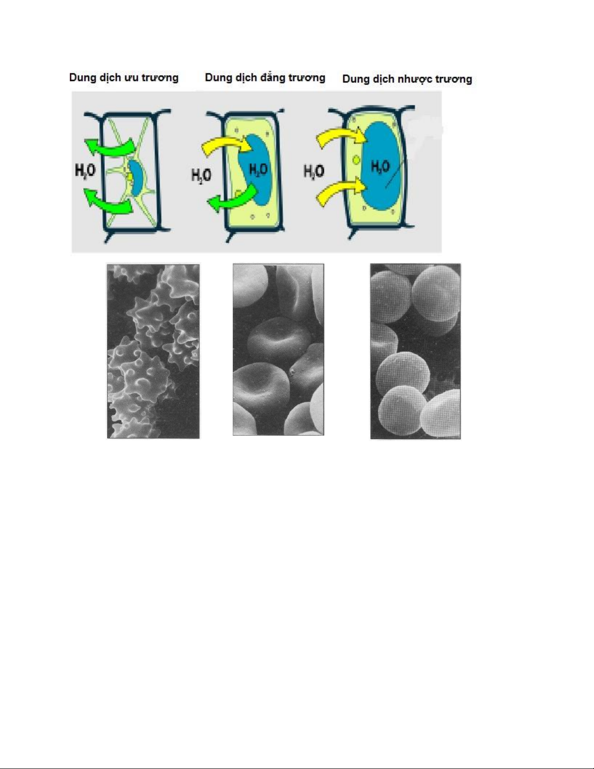 tan cao hơn ở trong tế bào thì dung dịch môi trường là ưu trương (so với dịch tế bào), còn dich