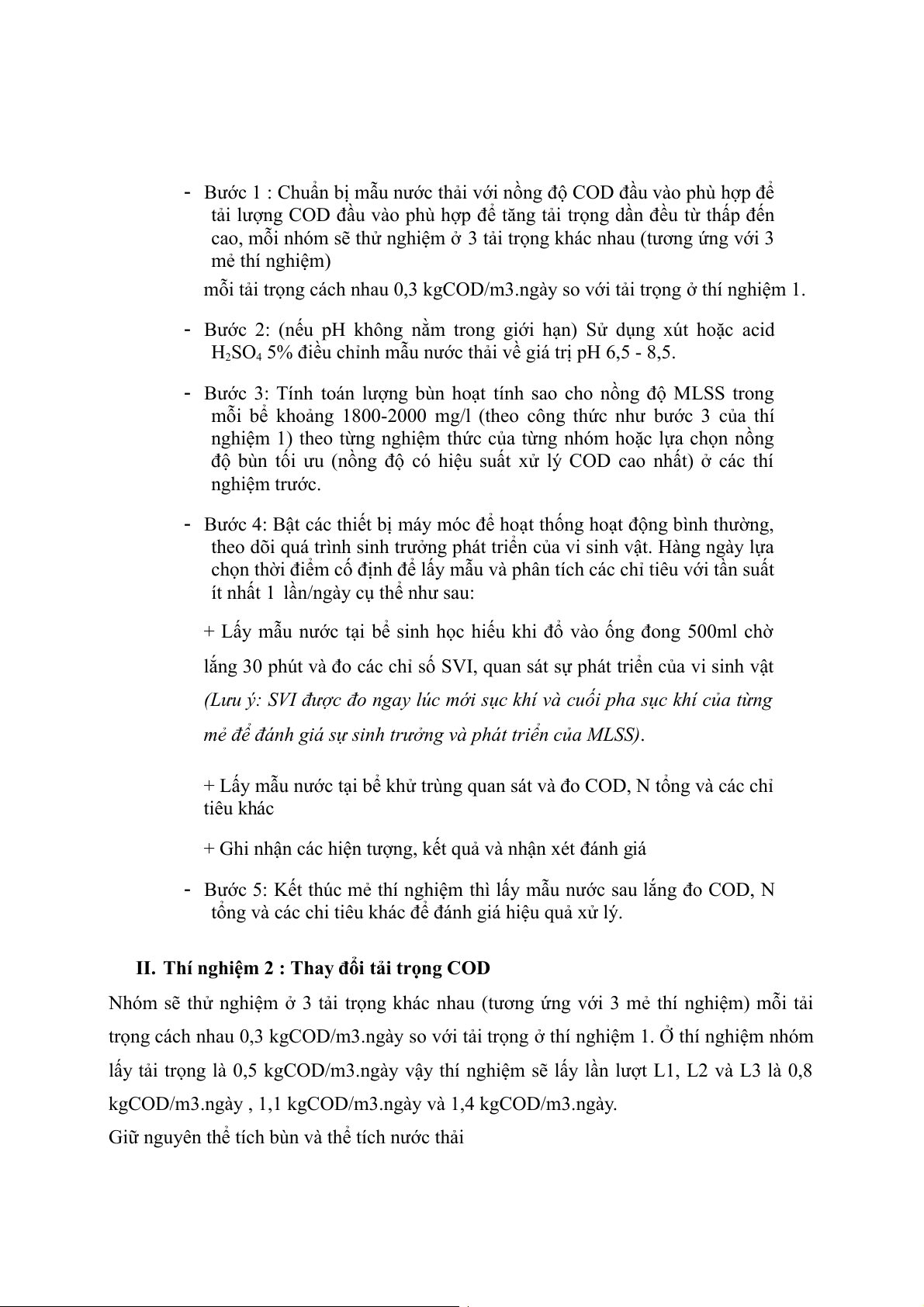 mỗi tải trọng cách nhau 0,3 kgCOD/m3.ngày so với tải trọng ở thí nghiệm 1.