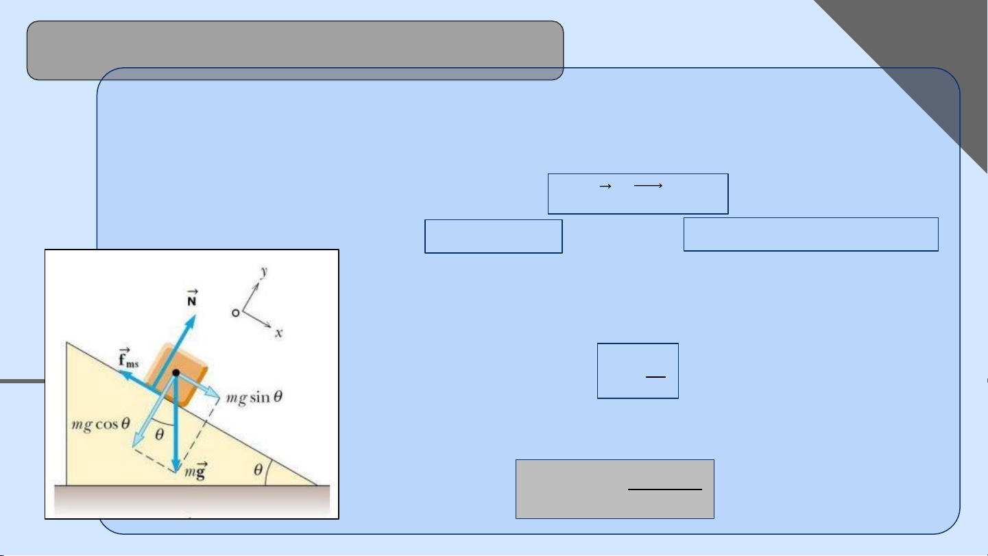 (1) /Oy: 𝑚𝑔 cos 𝜃 = 𝑁 (2) (1)/Ox: 𝑚𝑔 sin 𝜃 − 𝜇𝑚𝑔 cos 𝜃 = 𝑚𝑎 (3)