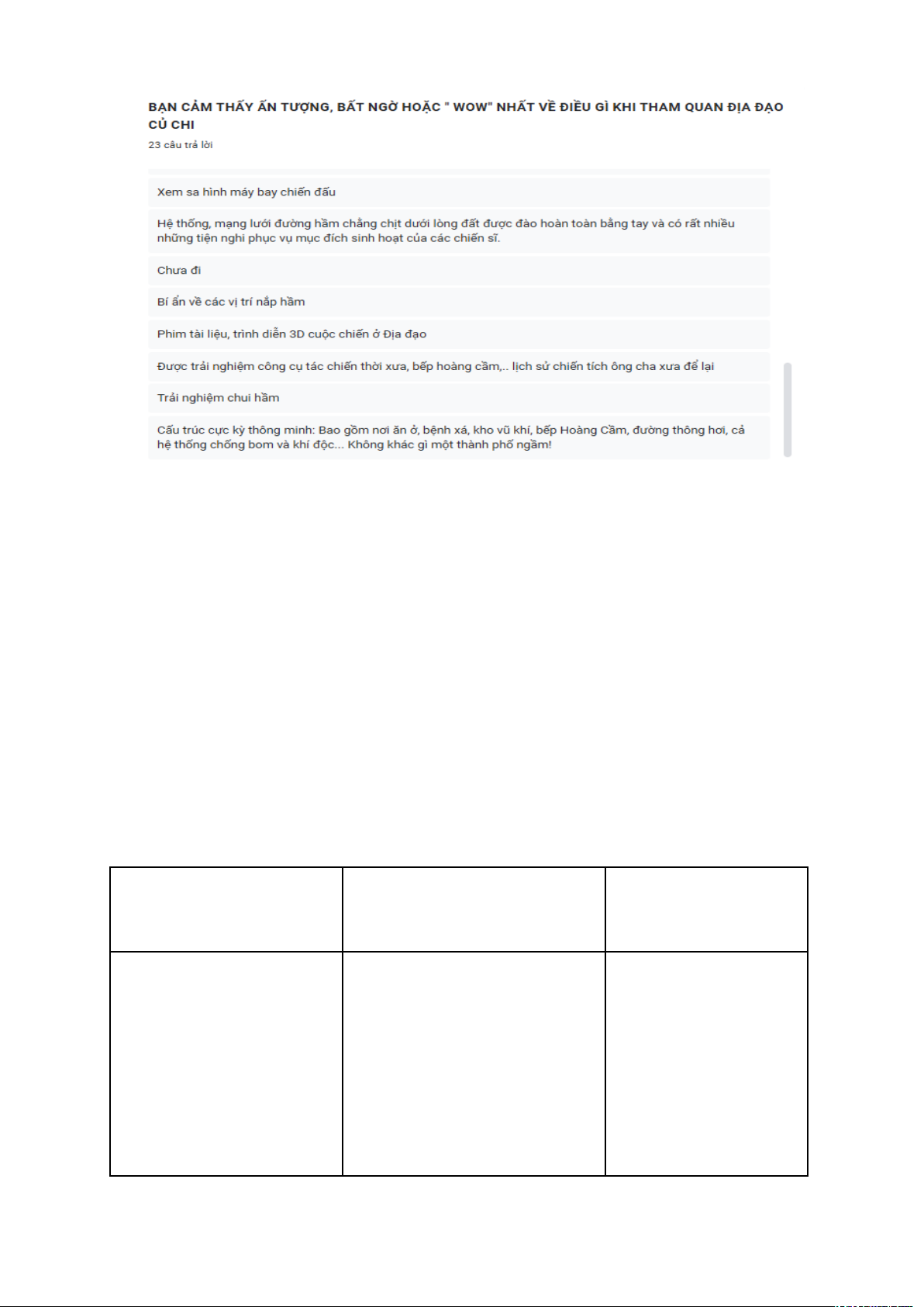 3.3 Khảo sát trực tiếp trải nghiệm của khách du lịch tại Địa đạo Củ Chi..................................8