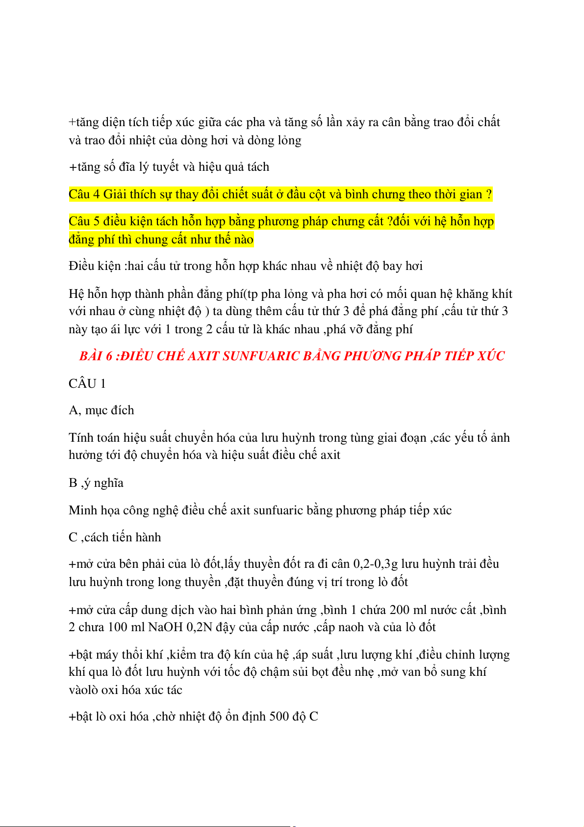BÀI 6 :ĐIỀU CHẾ AXIT SUNFUARIC BẰNG PHƯƠNG PHÁP TIẾP XÚC CÂU 1 A, mục đích