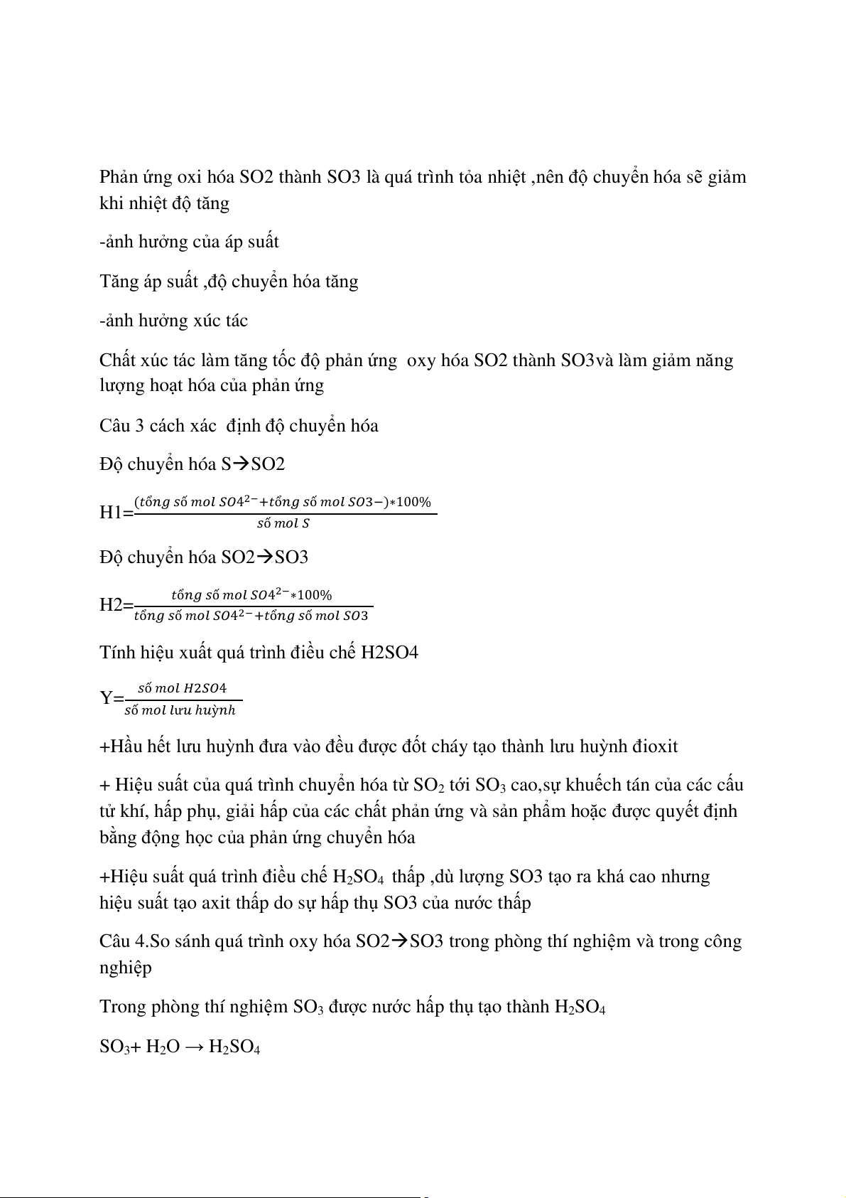 Câu 2 ảnh hưởng của nhiệt độ ,áp suất xúc tác của quá trình oxy hóa SO2 SO2+O2SO3