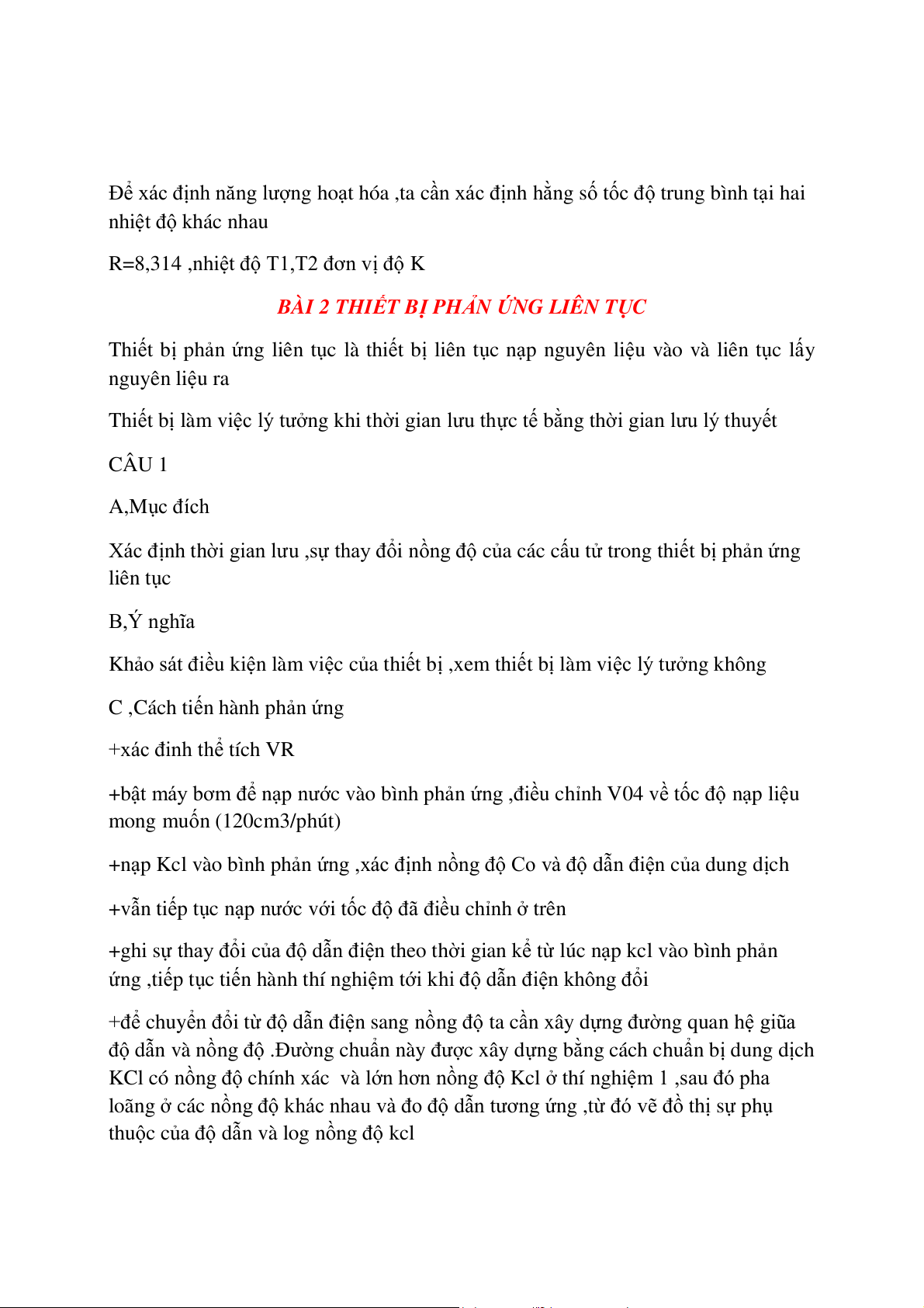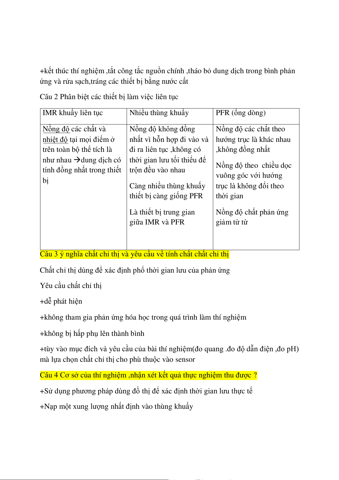 Câu 2 Sự khác nhau thiết bị phản ứng gián đoạn và thiết bị phản ứng liên tục