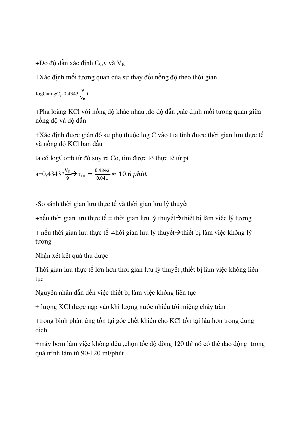 +Xác định được giản đồ sự phụ thuộc log C vào t ta tính được thời gian lưu thực tế