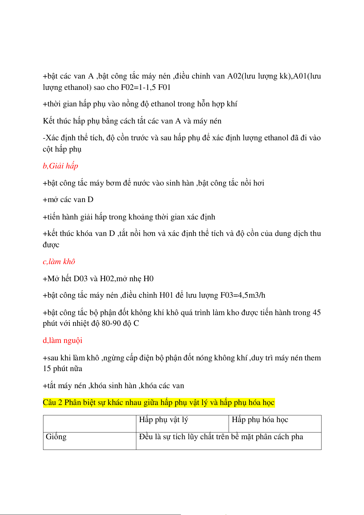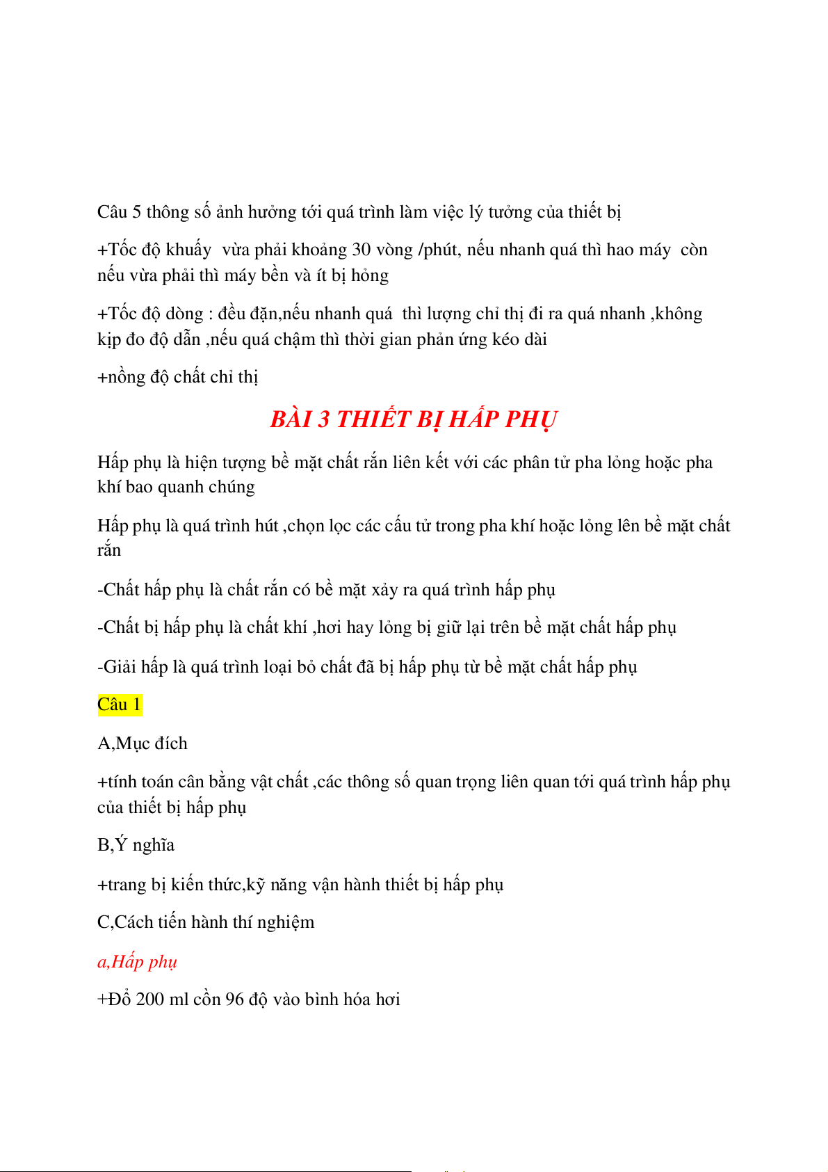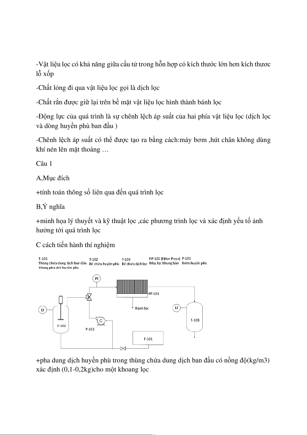 Thiết bị làm việc lý tưởng khi thời gian lưu thực tế bằng thời gian lưu lý thuyết CÂU 1 A,Mục đích