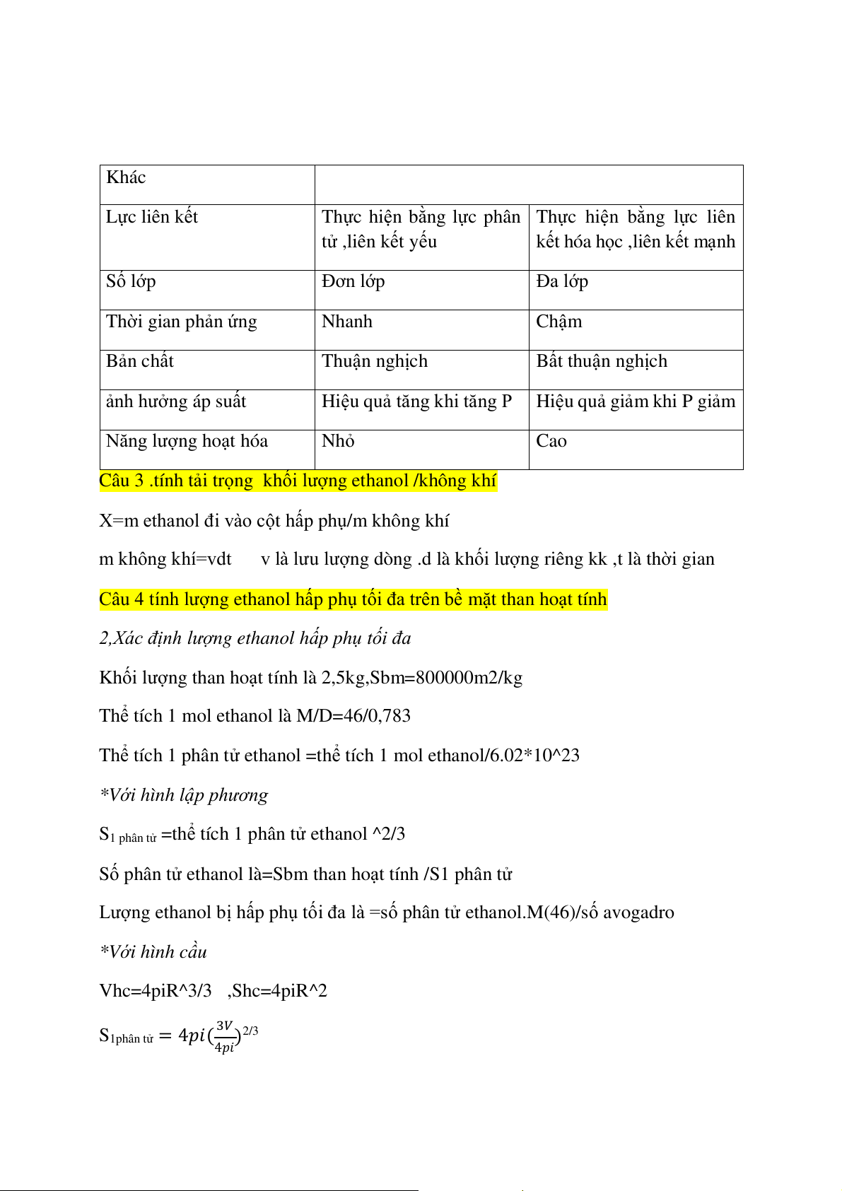 Từ giá trị bảng số liệu ta tính %mol của methanol và ethanol