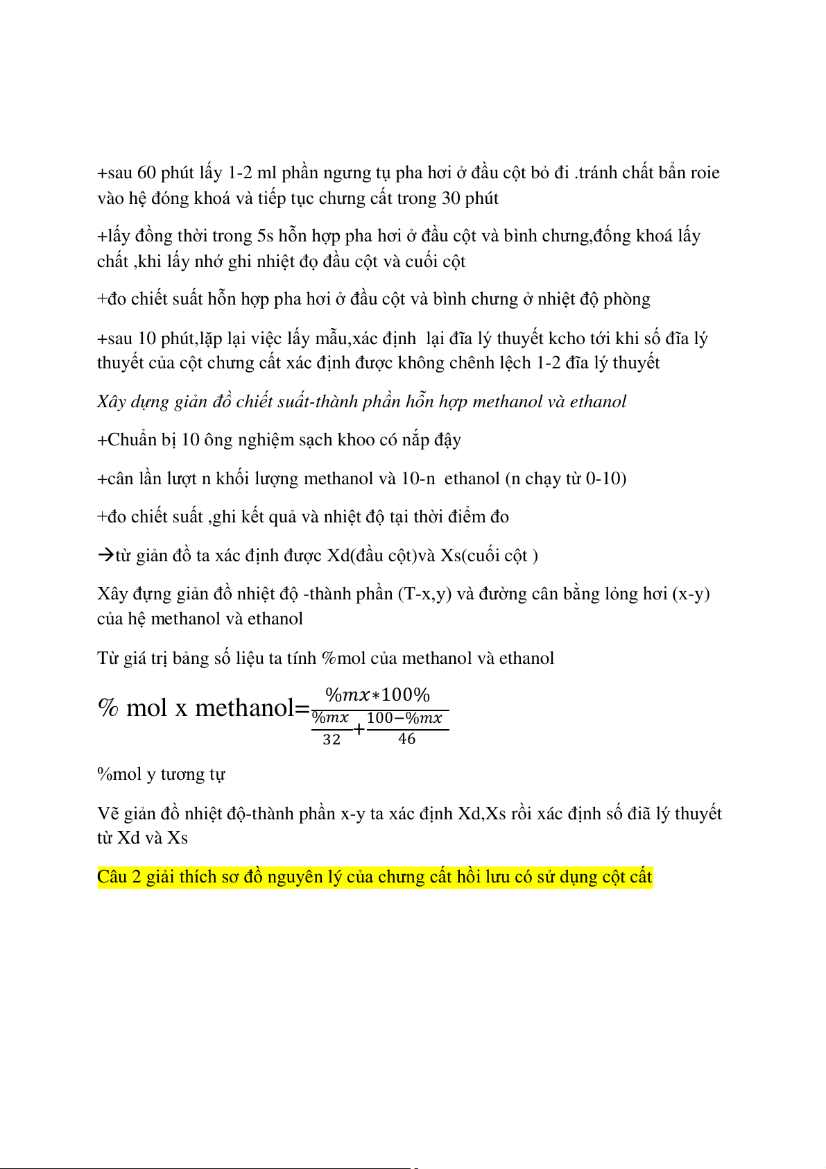 % mol x methanol= %𝑚𝑥∗100% %𝑚𝑥 100−%𝑚𝑥 + 32 46 %mol y tương tự