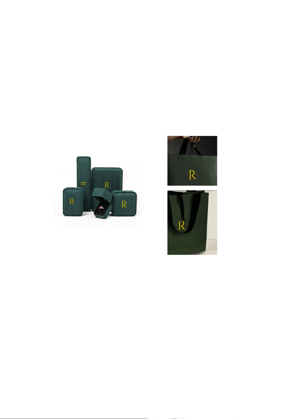 Bao bì của thương hiệu trang sức "Rạng Jewelry" được thiết kế với màu xanh ngọc đậm