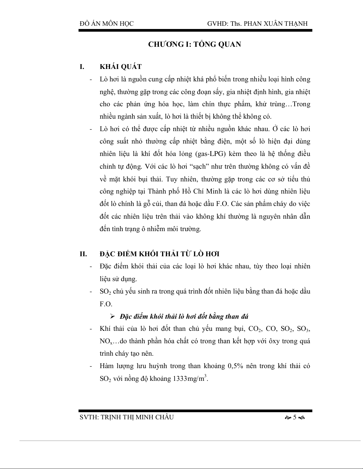 - Khí thải của lò hơi đốt than chủ yếu mang bụi, CO2, CO, SO2, SO3,