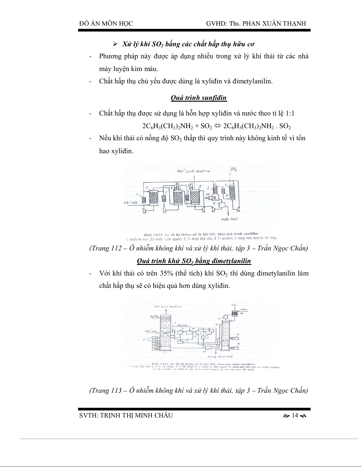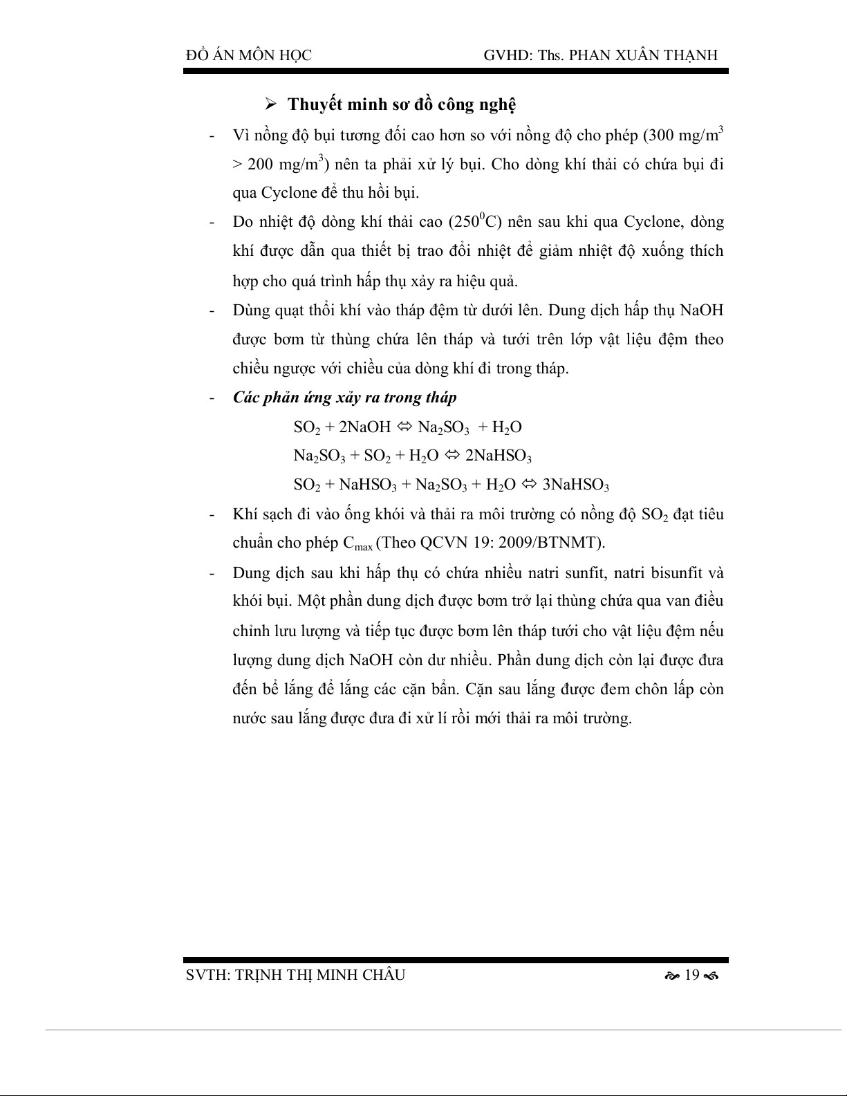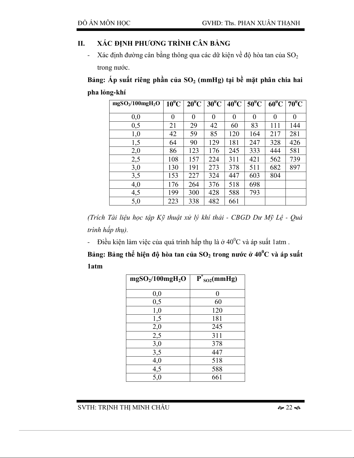 - Áp suất: Pt = 1atm = 760 mmHg = 1,0133.105 Pa. - Nồng độ đầu ra: C c SO2 = 500 mg/m3