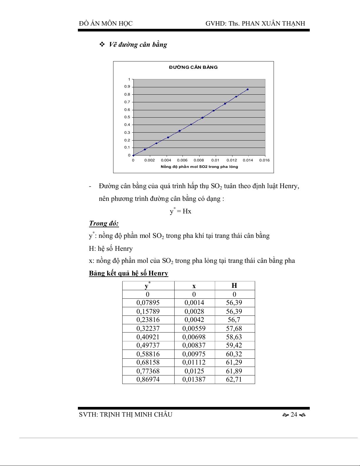 y*: nồng độ phần mol SO2 trong pha khí tại trang thái cân bằng H: hệ số Henry