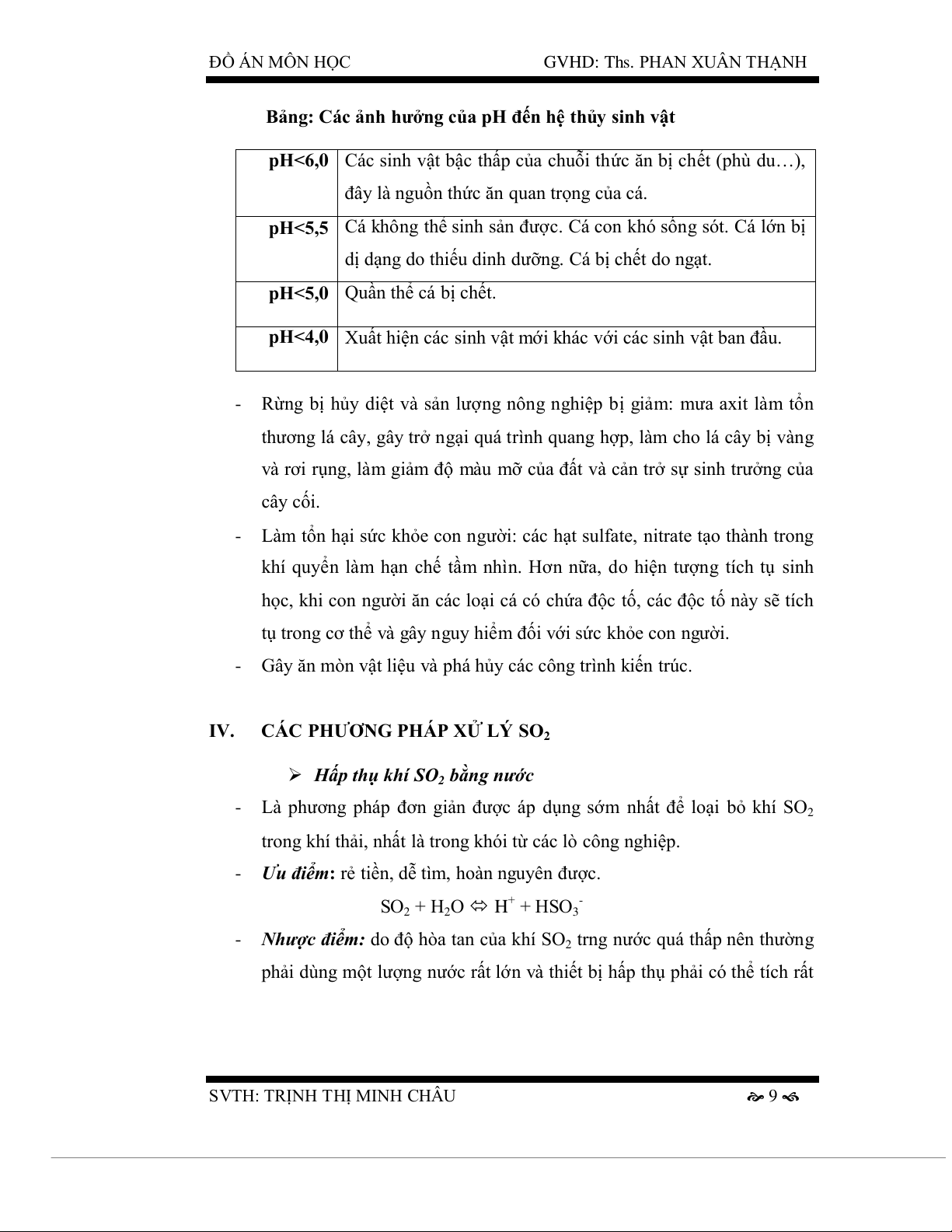 - Đối với nồng độ cao, ta có thể áp dụng phương pháp hấp thụ SO2 bằng