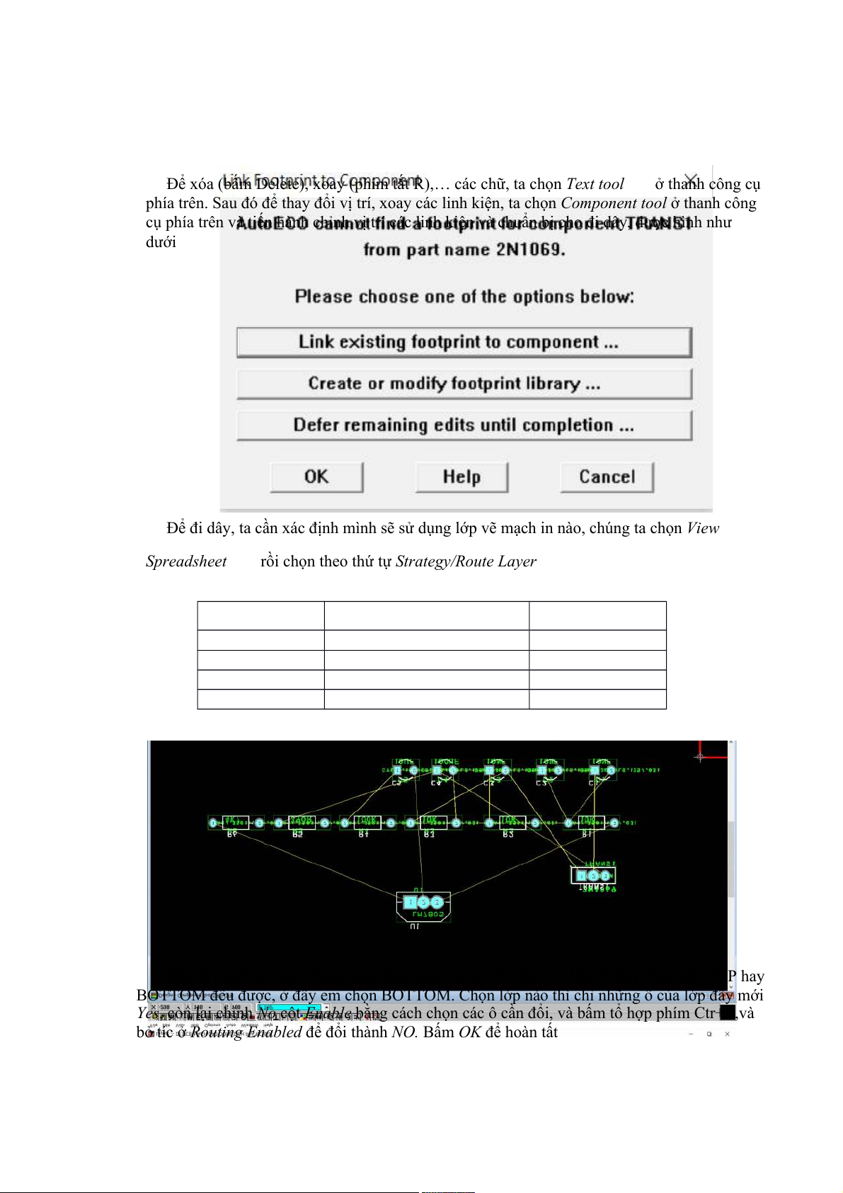 Để đi dây, ta cần xác định mình sẽ sử dụng lớp vẽ mạch in nào, chúng ta chọn View Spreadsheet Strategy/Route Layer rồi chọn theo thứ tự