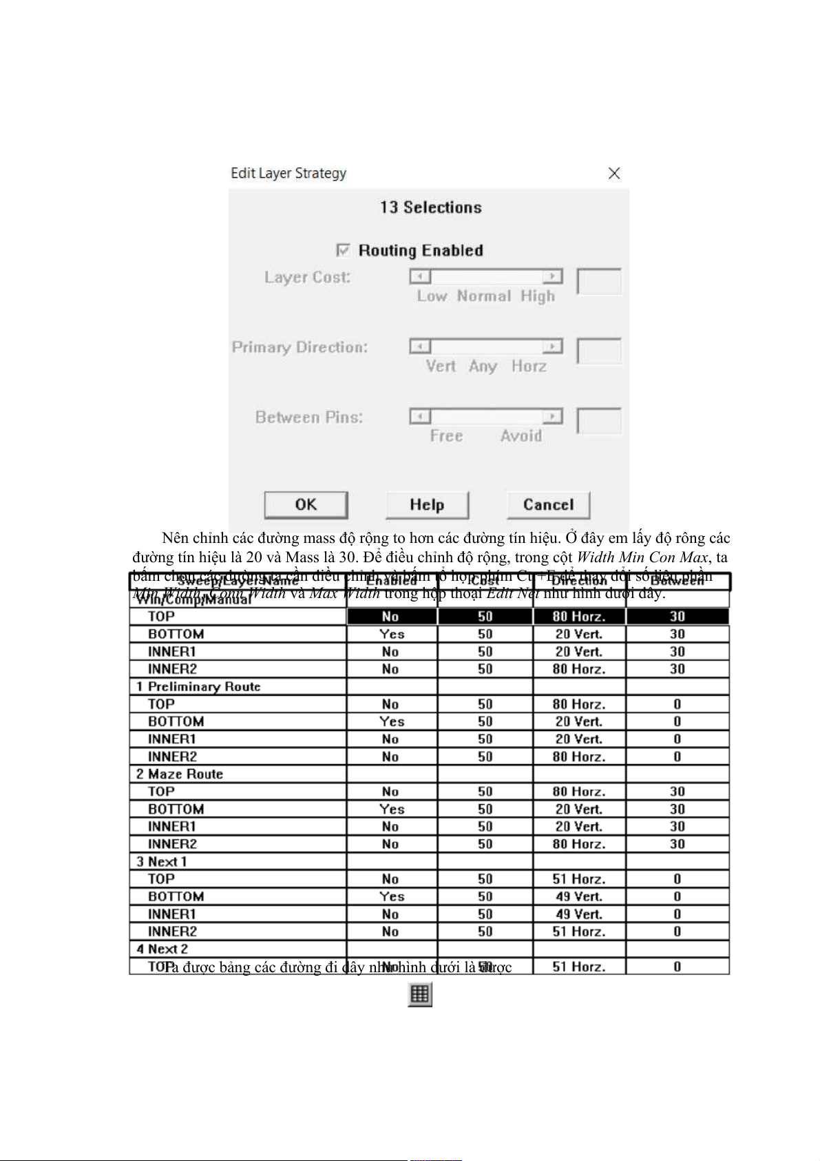 đường tín hiệu là 20 và Mass là 30. Để điều chỉnh độ rộng, trong cột Width Min Con Max, ta
