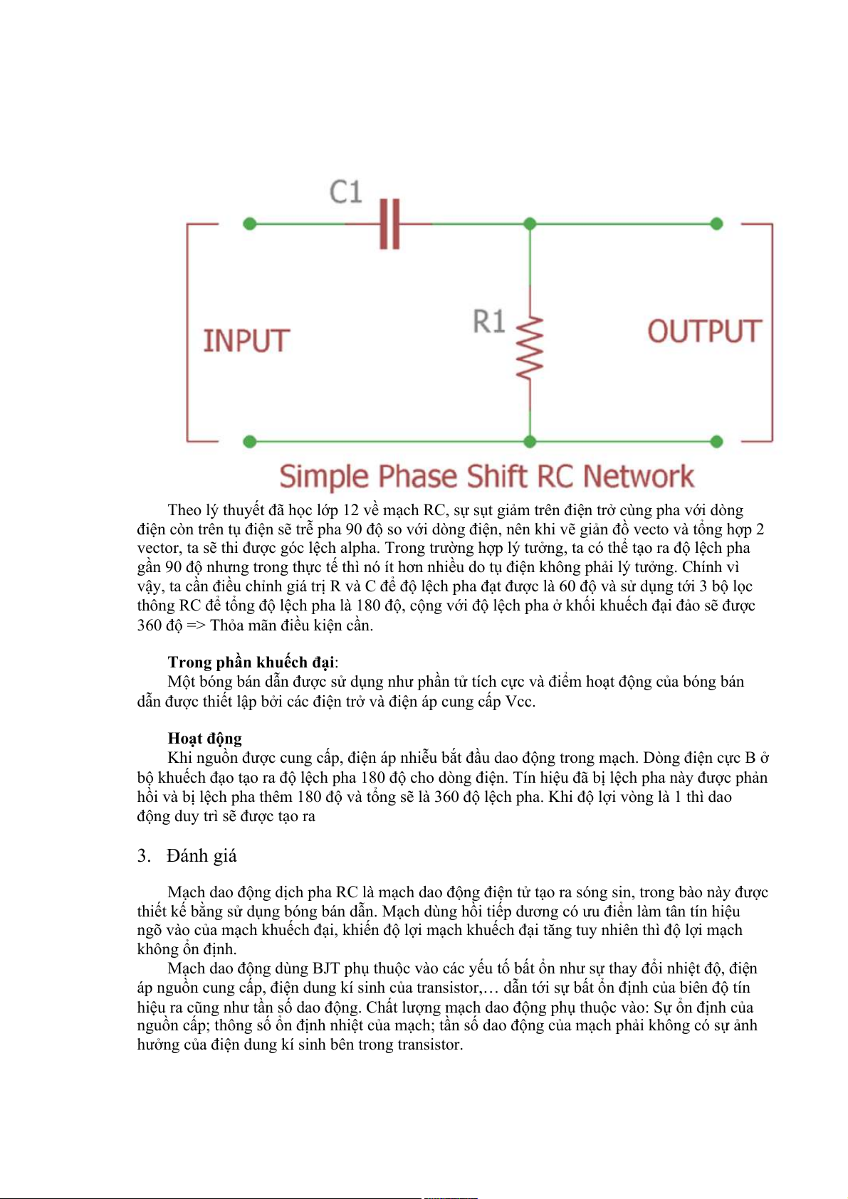 tiếp là 3 bộ lọc thông cao RC; và phải đáp ứng 2 điều kiện theo tiêu chuẩn Barkhausen là tổng
