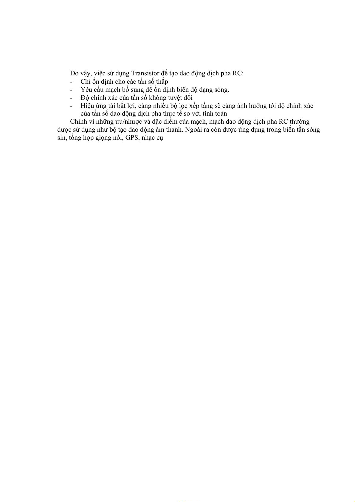 Do vậy, việc sử dụng Transistor để tạo dao động dịch pha RC: -