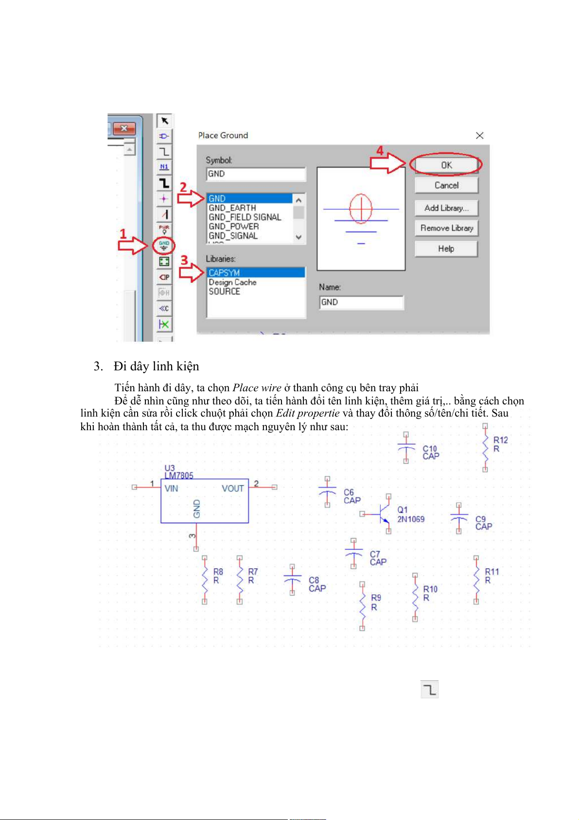Libraries và chọn GND ở mục Symbol OK . Sau đó bấm