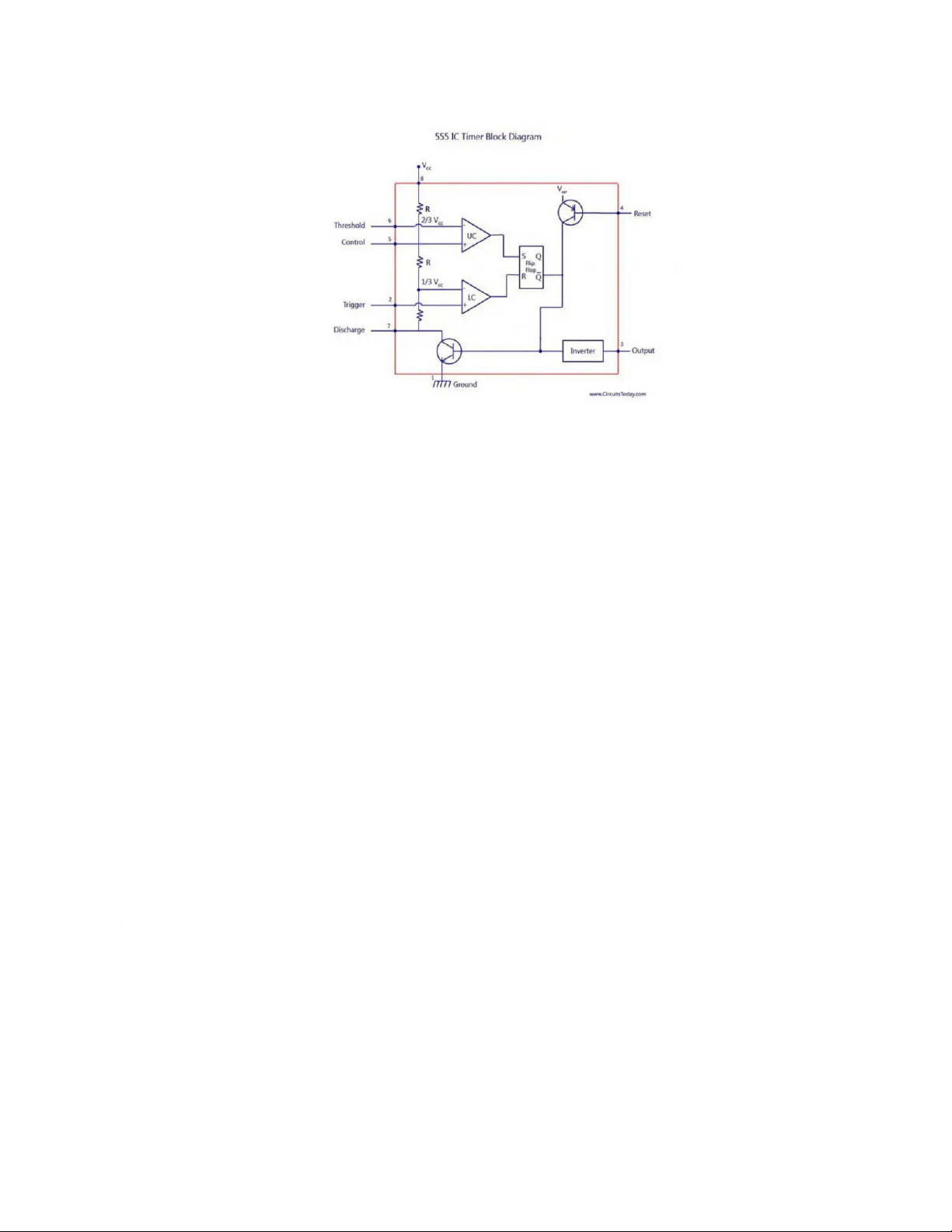 Nguyên lý hoạt động chính của IC 555 có thể mô tả như sau: