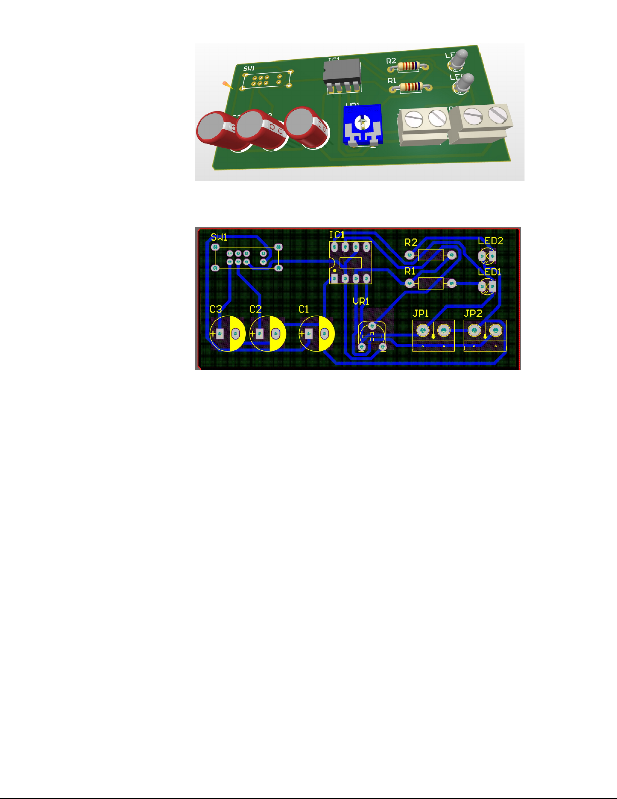 Các linh kiện được lấy từ thư viện syhaunguyen.lntLib Item ID Footprint IC555 DIP8/W0.3 R1/4W R1/4W Cap CP2/5 SW3x2 SW3x2 LED LED-3 Header 2_1 HED2 Var Resistor VR III. VẼ NGUYÊN LÝ MẠCH IN