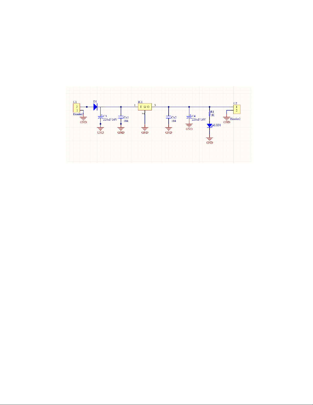 IV. Giá trị của từng linh kiện: IC: LM78XX . C1, C2 : header IDC C3 = C4 = 220uF/16V Cx1=Cx2=104pF R1=1K LED D1 : diot