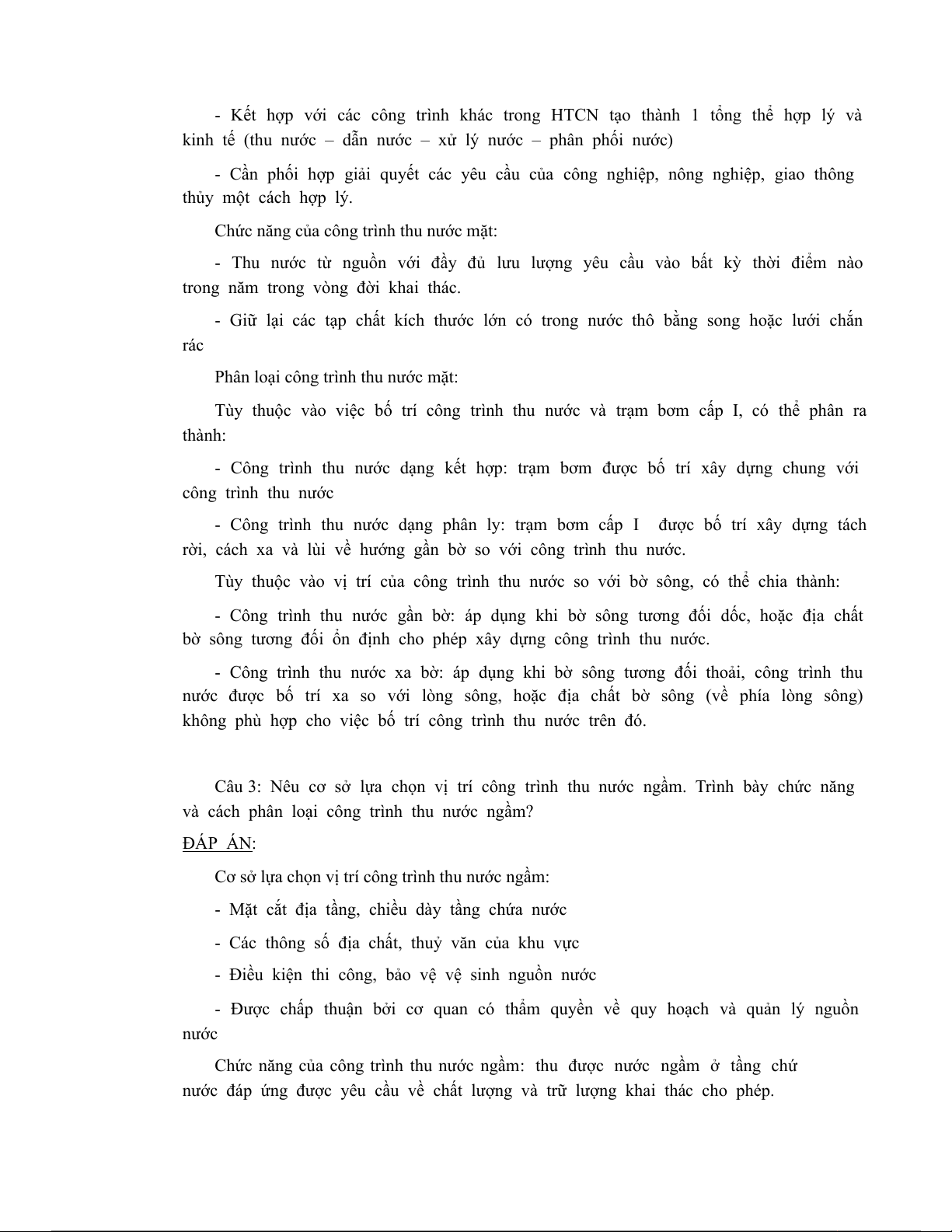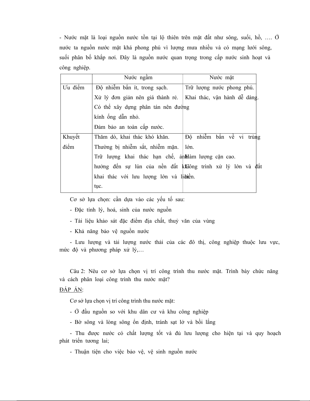 Câu 2: Nêu cơ sở lựa chọn vị trí công trình thu nước mặt. Trình bày chức năng