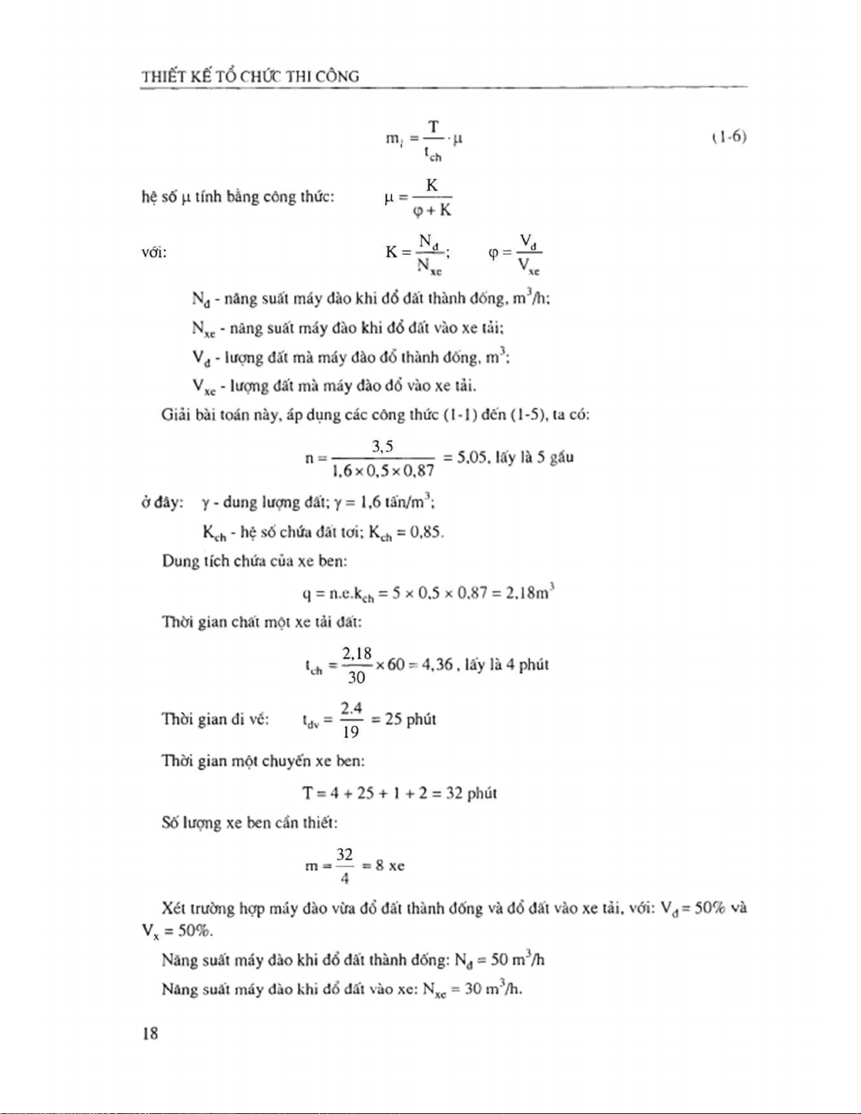 Năng suất máy đào khi đổ đất vào xe: Nxe = 30 m 3 /h. 18