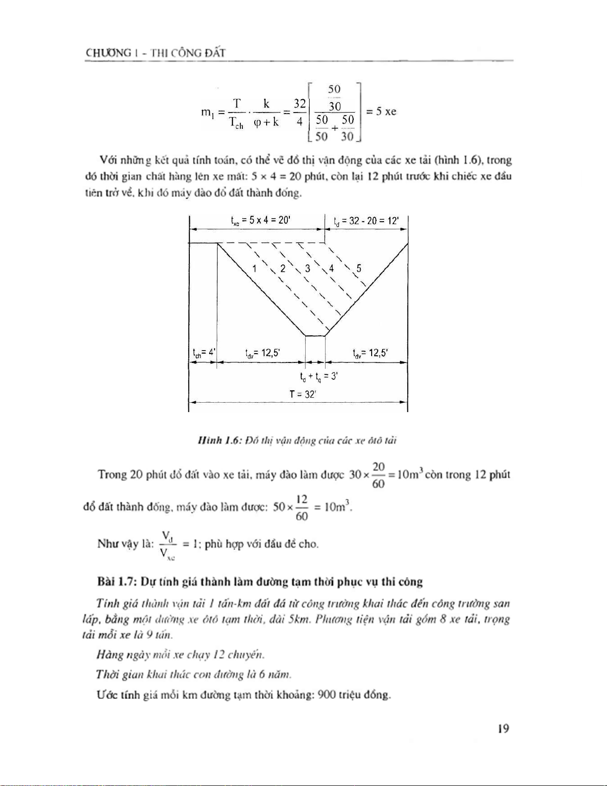 đổ đất thành đống, máy đào làm được: 50 X — = lOrrv. 60 V Như vây là: