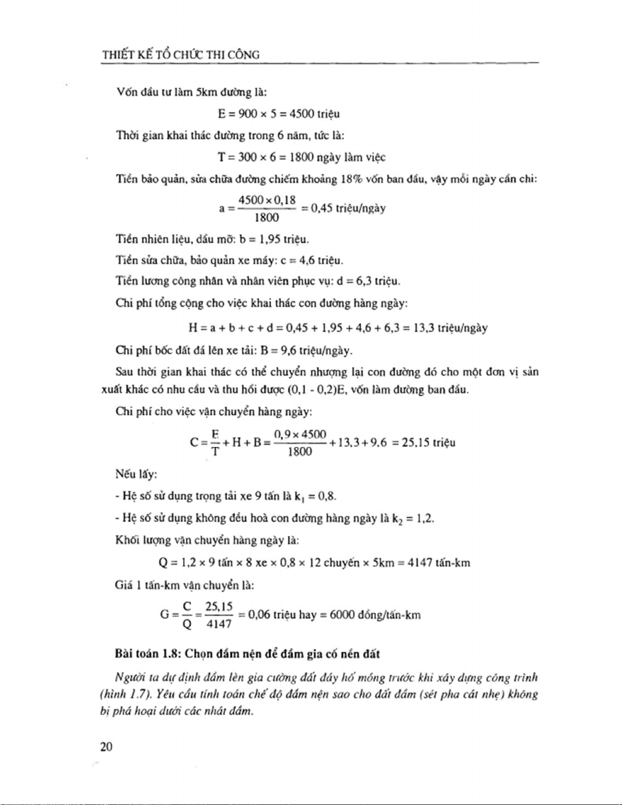 Bài 1.7: Dự tính giá thành làm đường tạm thòi phục vụ thi công