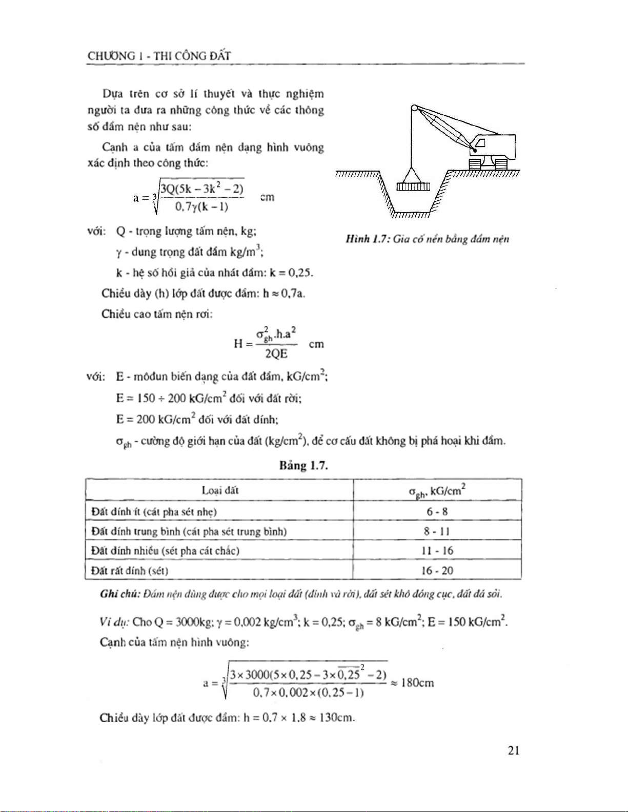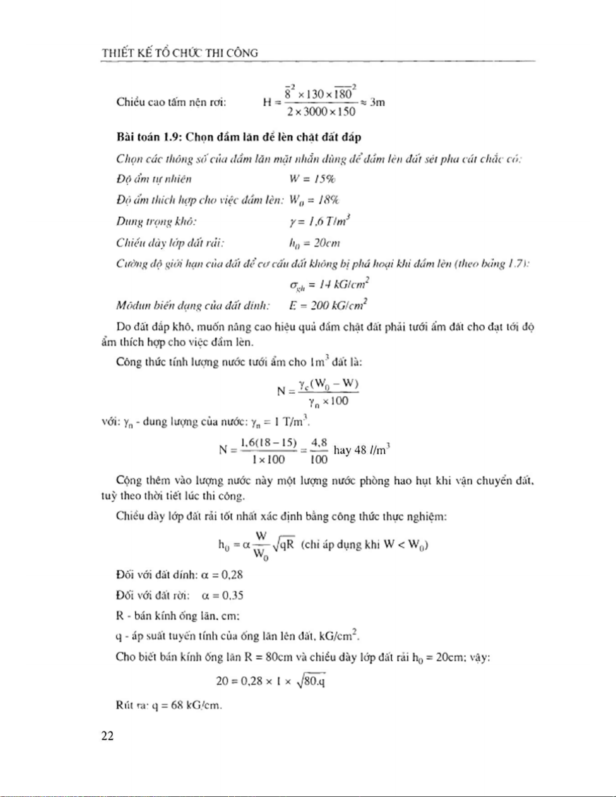 Độ ẩm thích hợp cho việc dầm lèn: W0 = 18 % Dunf> trọng khô: ỵ= ỉ,6T/m3