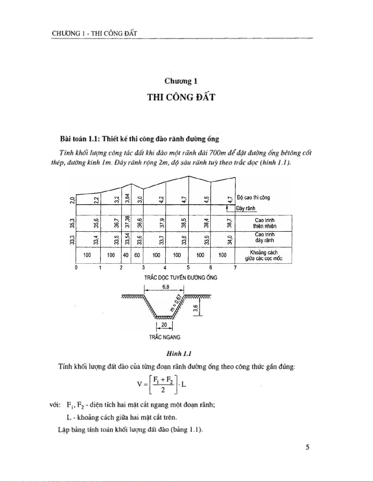 Bài toán 1.1: Thiết kê thi công đào rãnh đường ông
