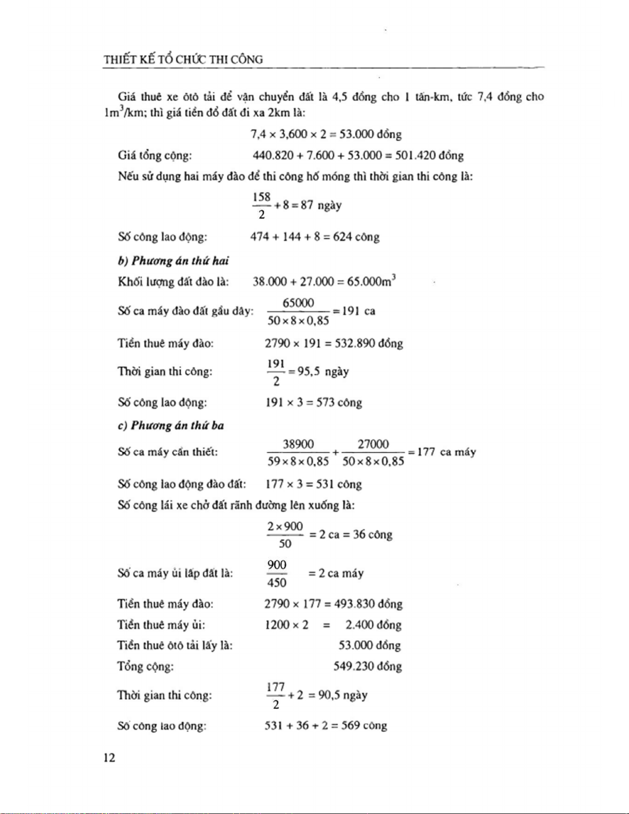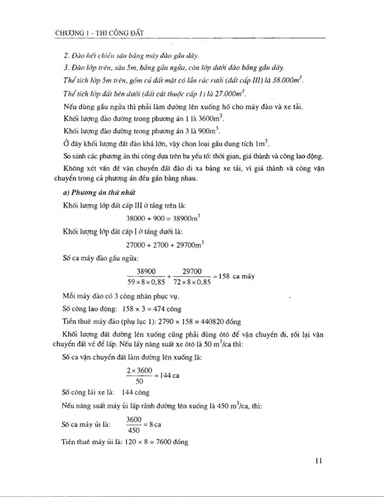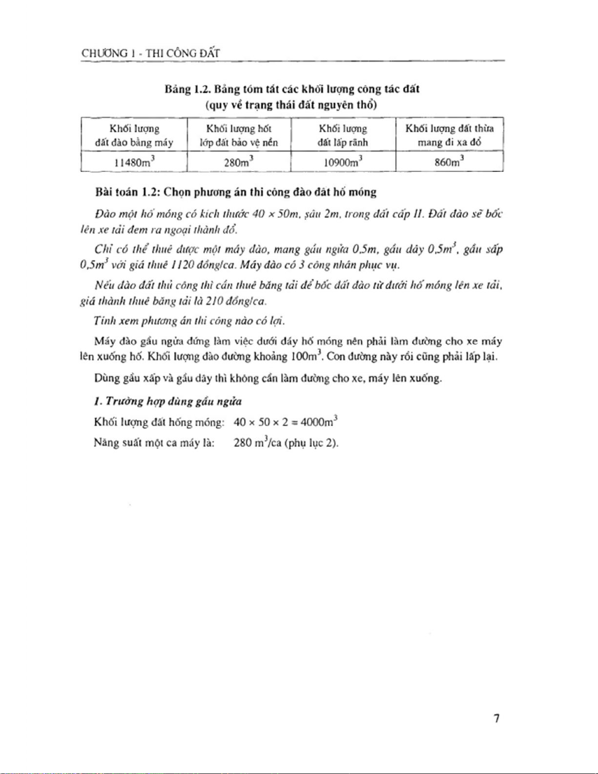 0 ,5m3 với giá thuê 1120 đổng/ca. Máy đào có 3 công nhân phục vụ.