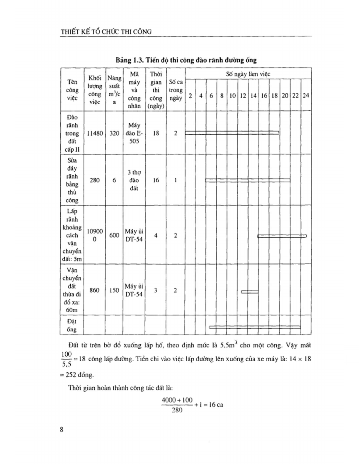 Bảng 1.3. Tiến độ thi công đào rãnh đường ống Mã Thời Số ngày làm việc Khối Năng Tên máy gian Sò' ca lượng suất công và thi trong công mVc việc công