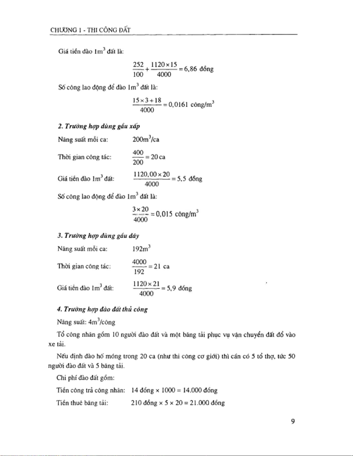 4 . Trường hợp đào đất thủ công Năng suất: 4m3/công