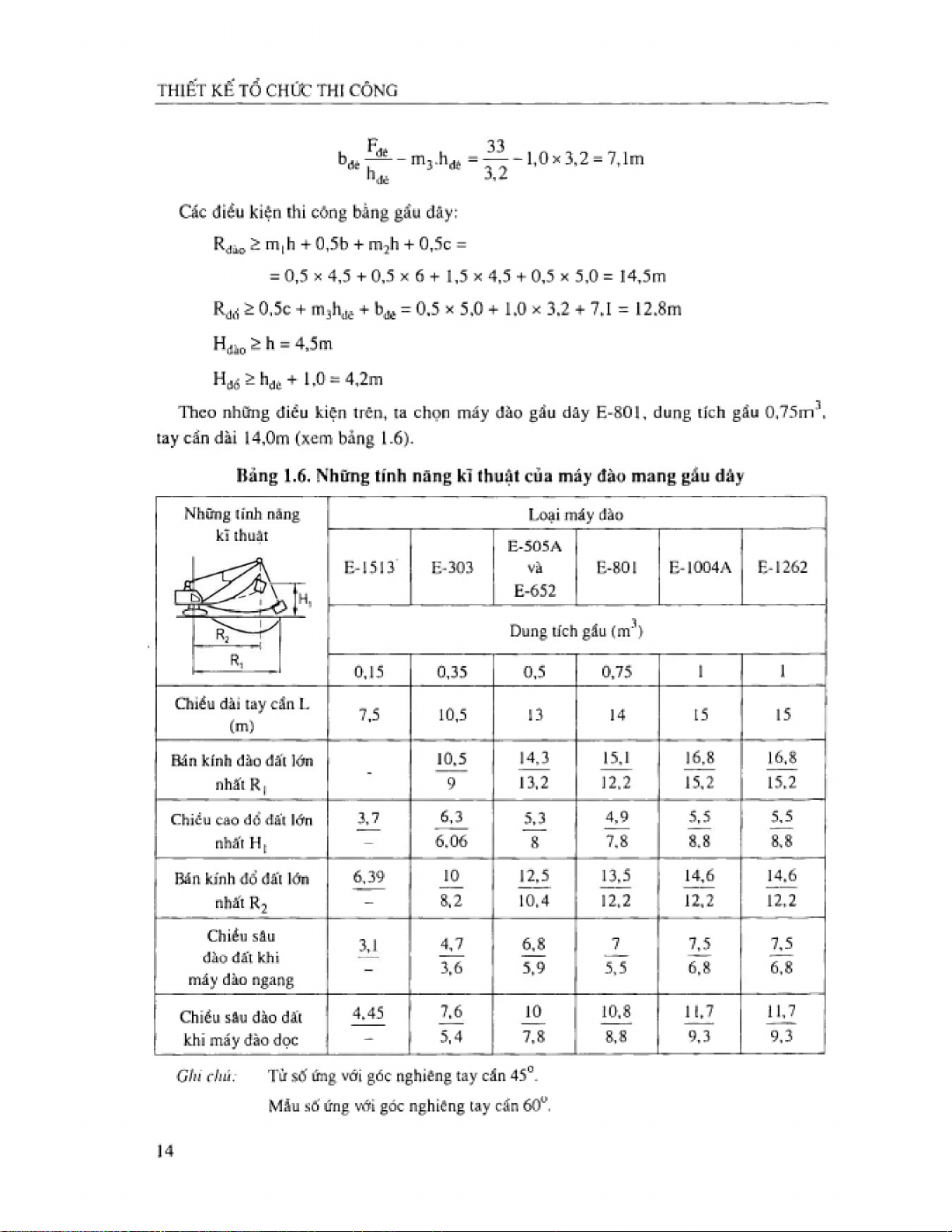 ở đây khối lượng đất đào khá lớn, vậy chọn loại gầu dung tích lm3.