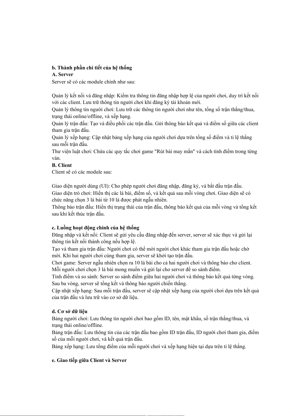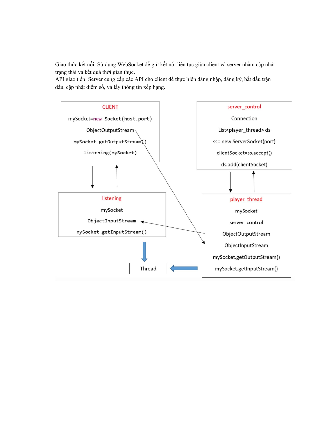 Hệ thống: bao gồm một server và (2 client trở lên) kết nối với nhau. Server quản lý trận đấu, lưu