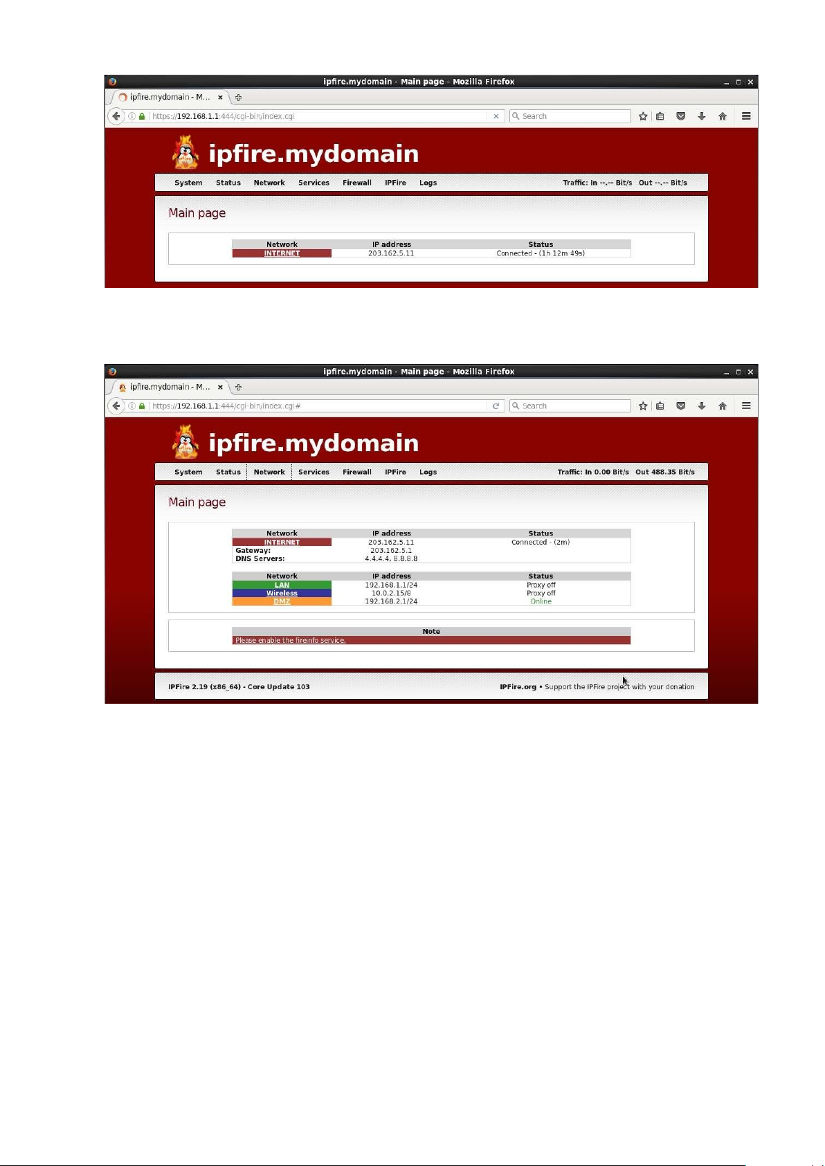 được thiết lập khi cài ặt IPFire), giao diện web của IPFire như sau: lOMoAR cPSD| 61601435