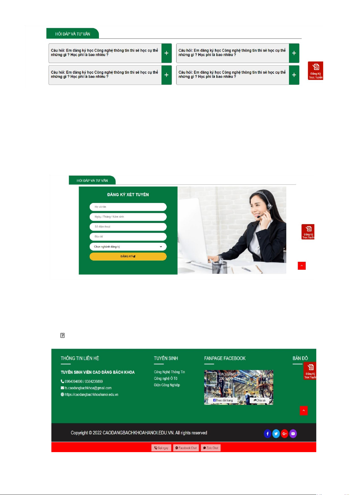 Phần Footer bao gồm các các liên lạc với nhà trường như số điện thoại, email hoặc