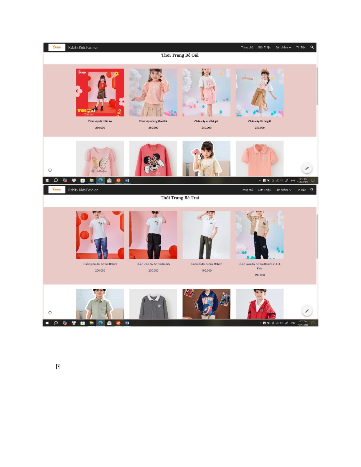 •Giao diện hoàn thiện của website kinh doanh quần áo trẻ em Rabity.
