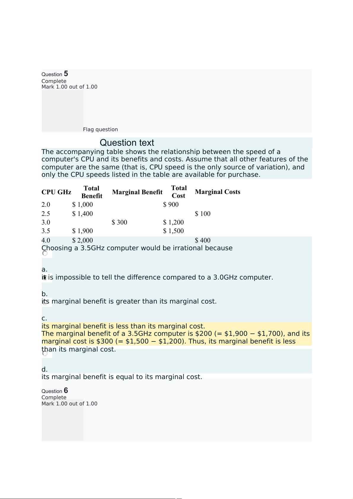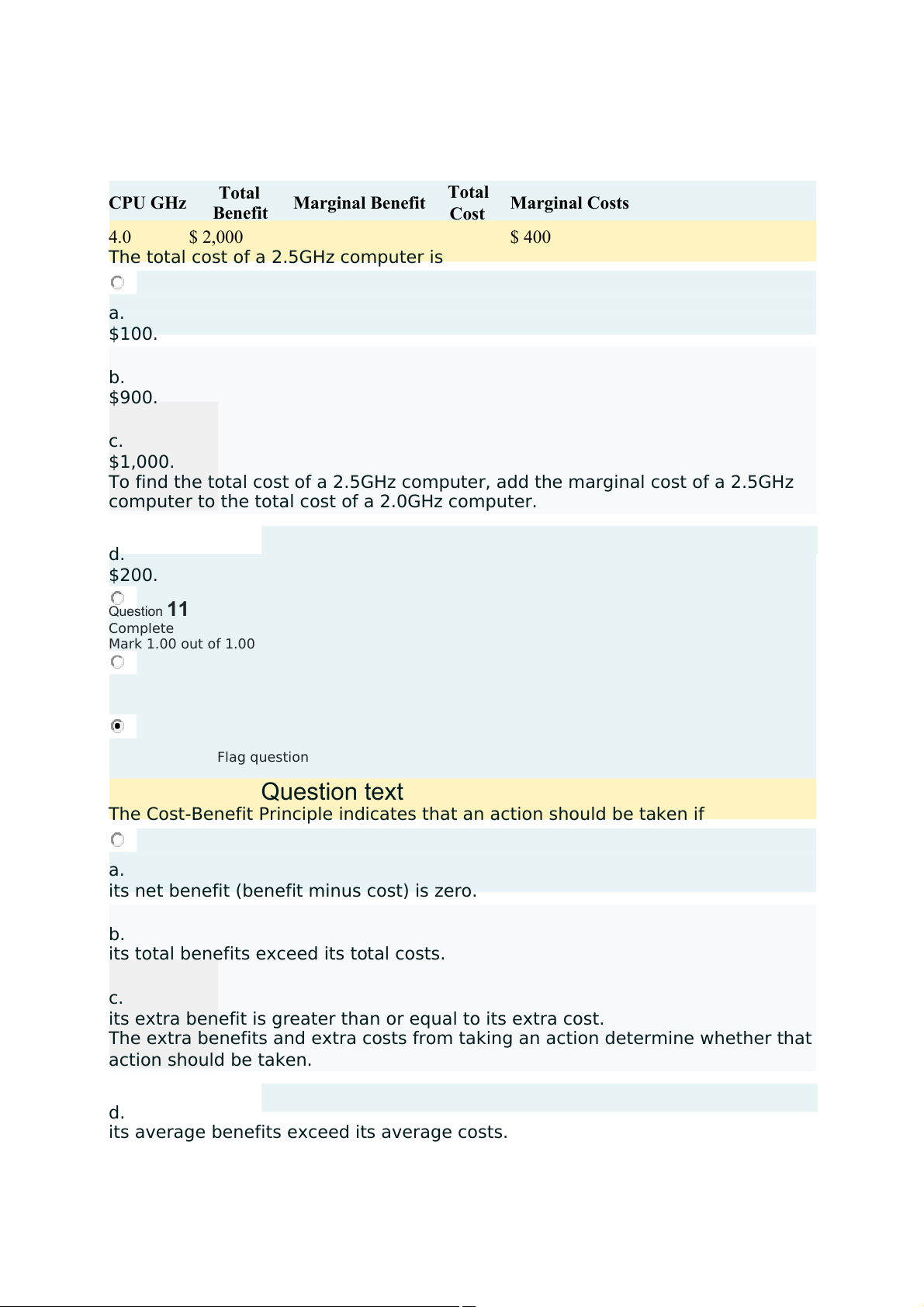 computer to the total cost of a 2.0GHz computer. d. $200. Question11 Complete Mark 1.00 out of 1.00 Flag question Questiontext