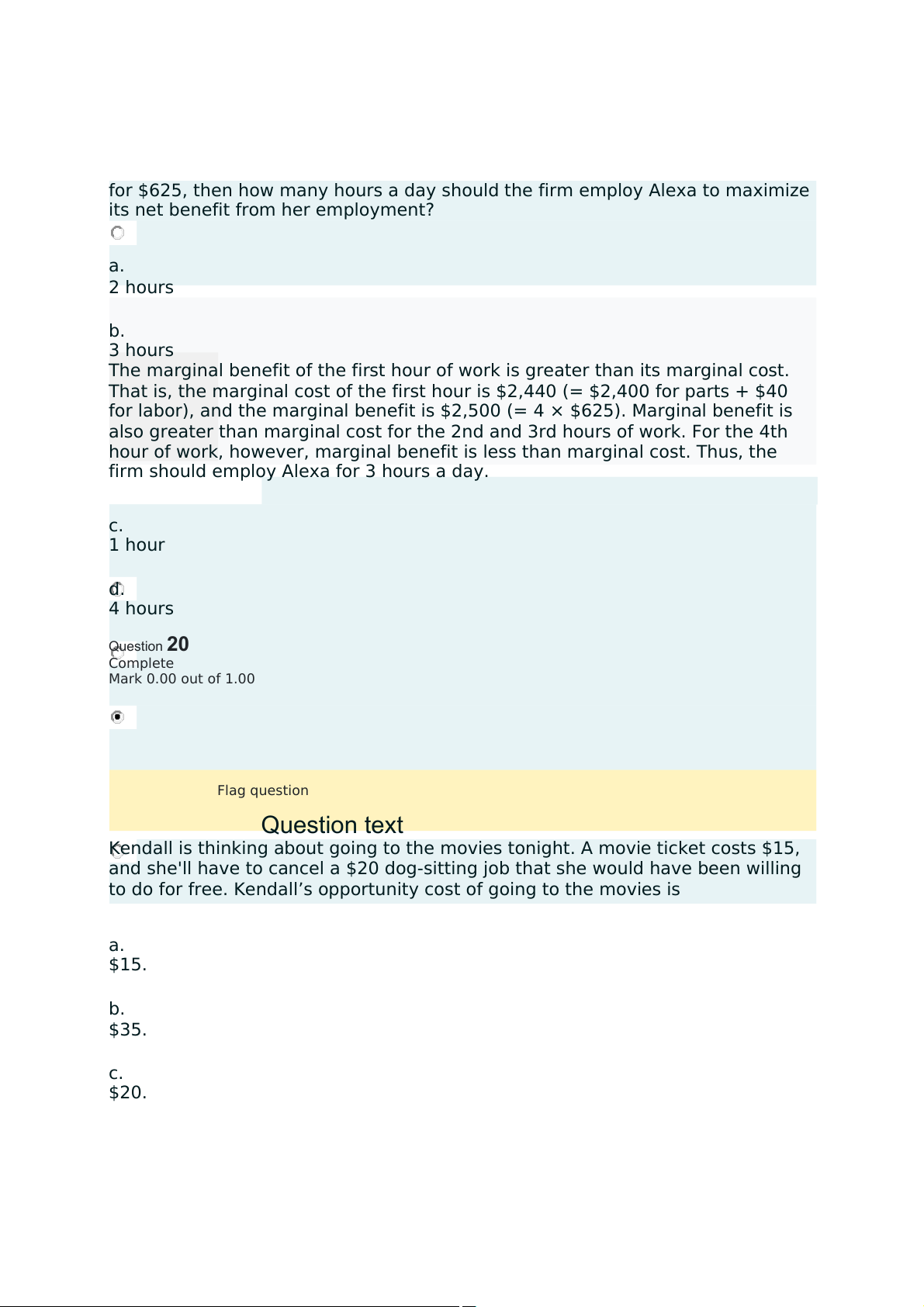 firm should employ Alexa for 3 hours a day. c. 1 hour d. 4 hours Question20 Complete Mark 0.00 out of 1.00 Flag question Questiontext