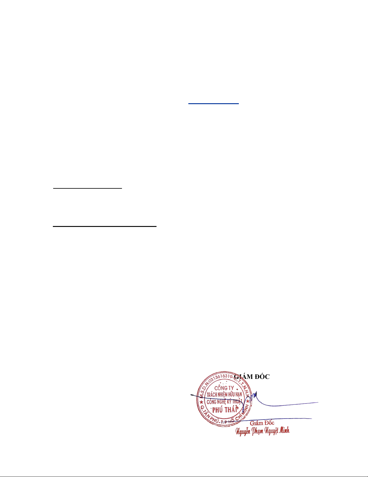 CỘNG HÒA XÃ HỘI CHỦ NGHĨA VIỆT CÔNG TY TNHH CÔNG NGHỆ NAM KỸ THUẬT PHÚ THÁI