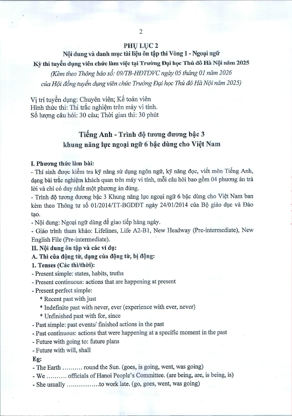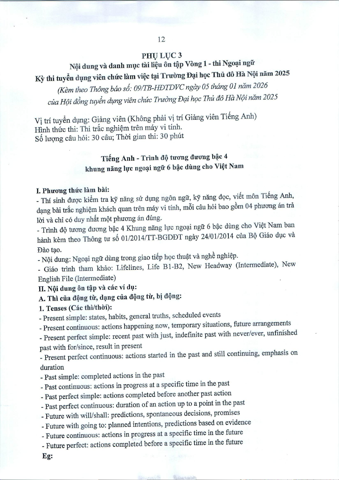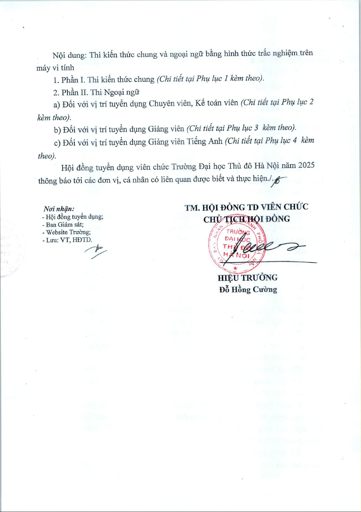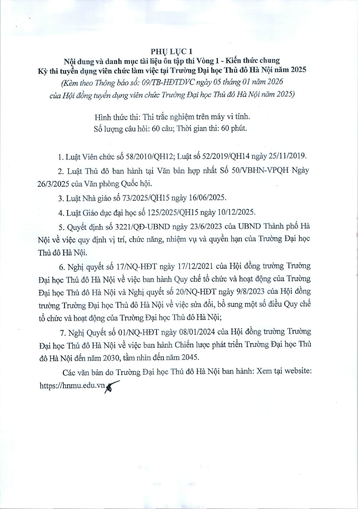 Thông báo Nội dung và danh mục tài liệu ôn tập thi vòng 1 kỳ thi tuyển viên chức làm việc tại Trường Đại học Thủ đô Hà Nội năm 2025