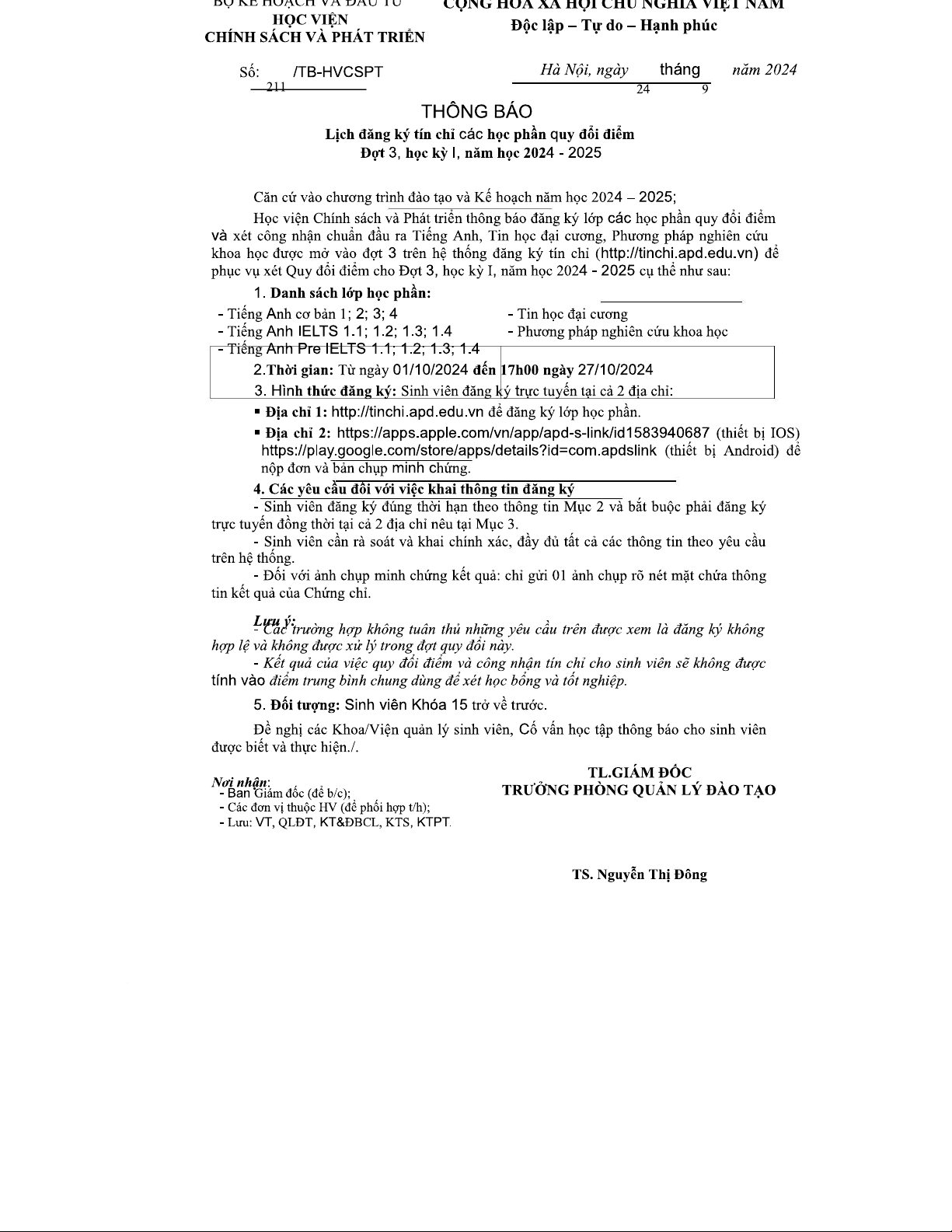 Thông Báo Quy Đổi Điểm Đợt 3 - Học Kỳ I Năm Học 2024-2025