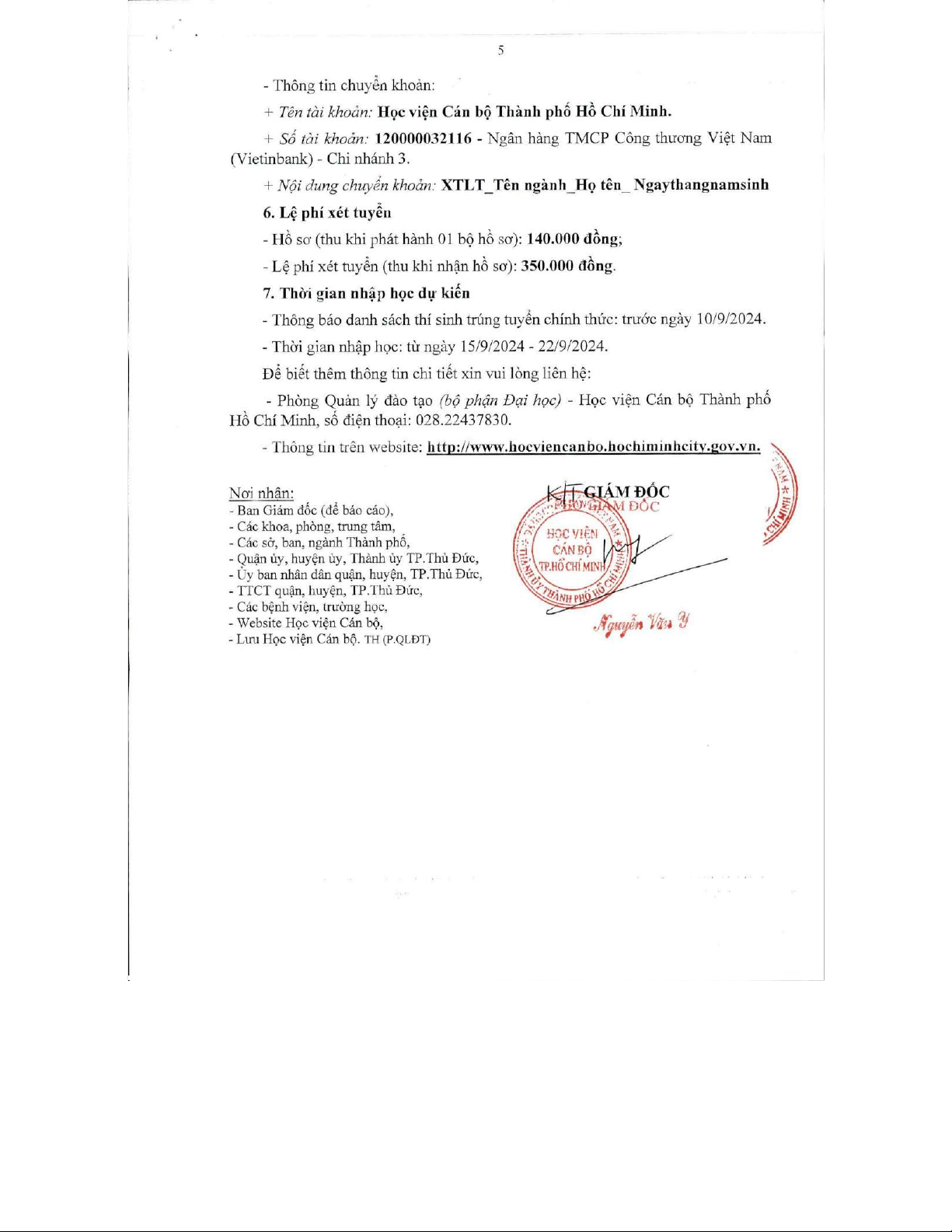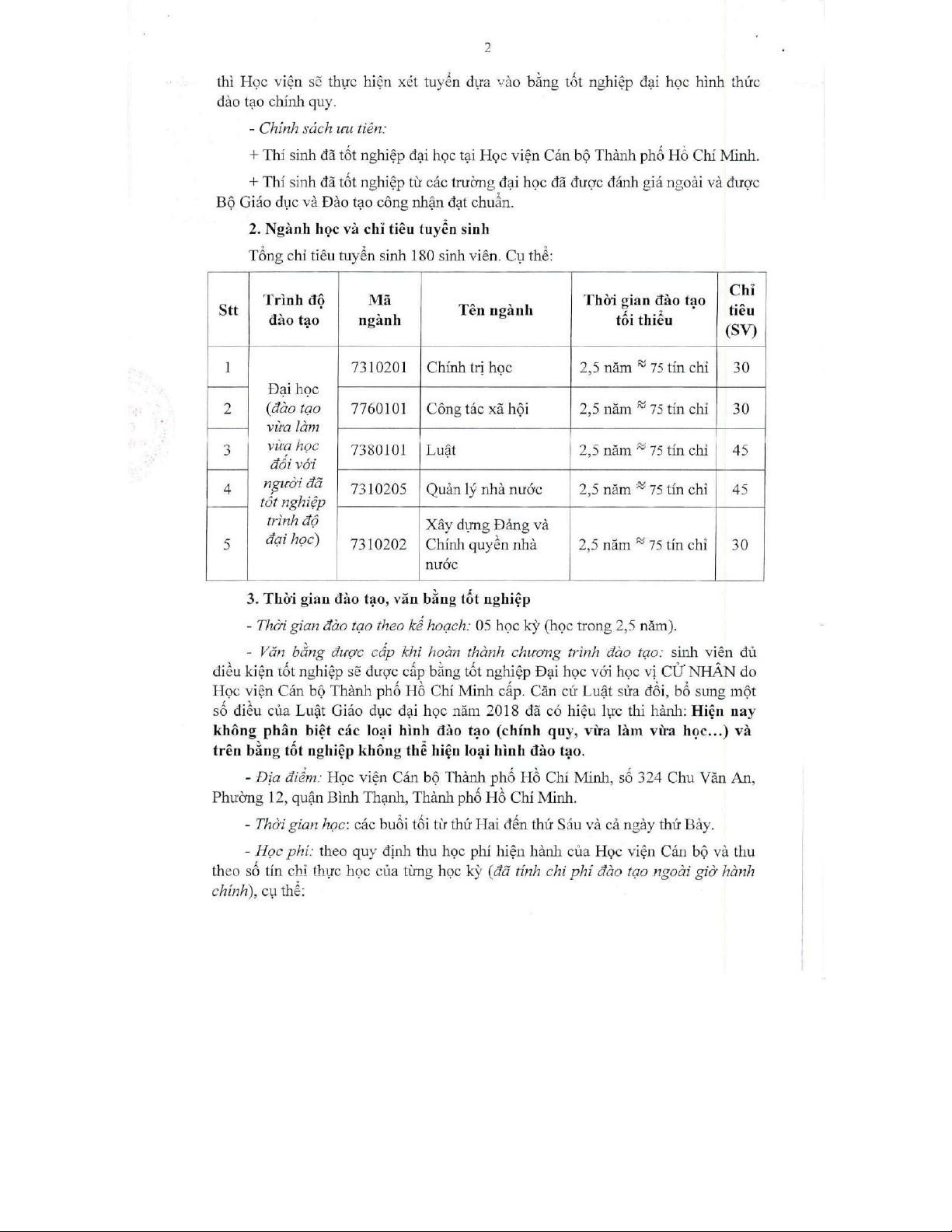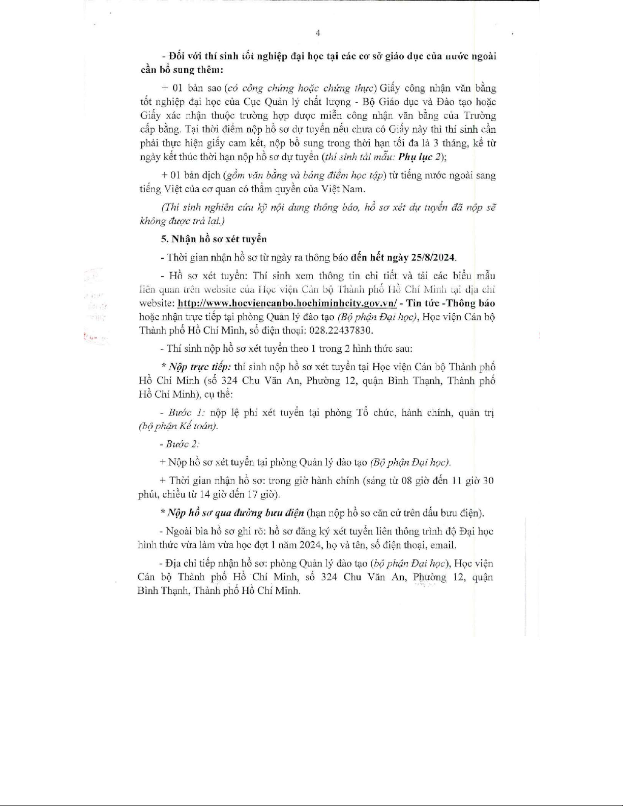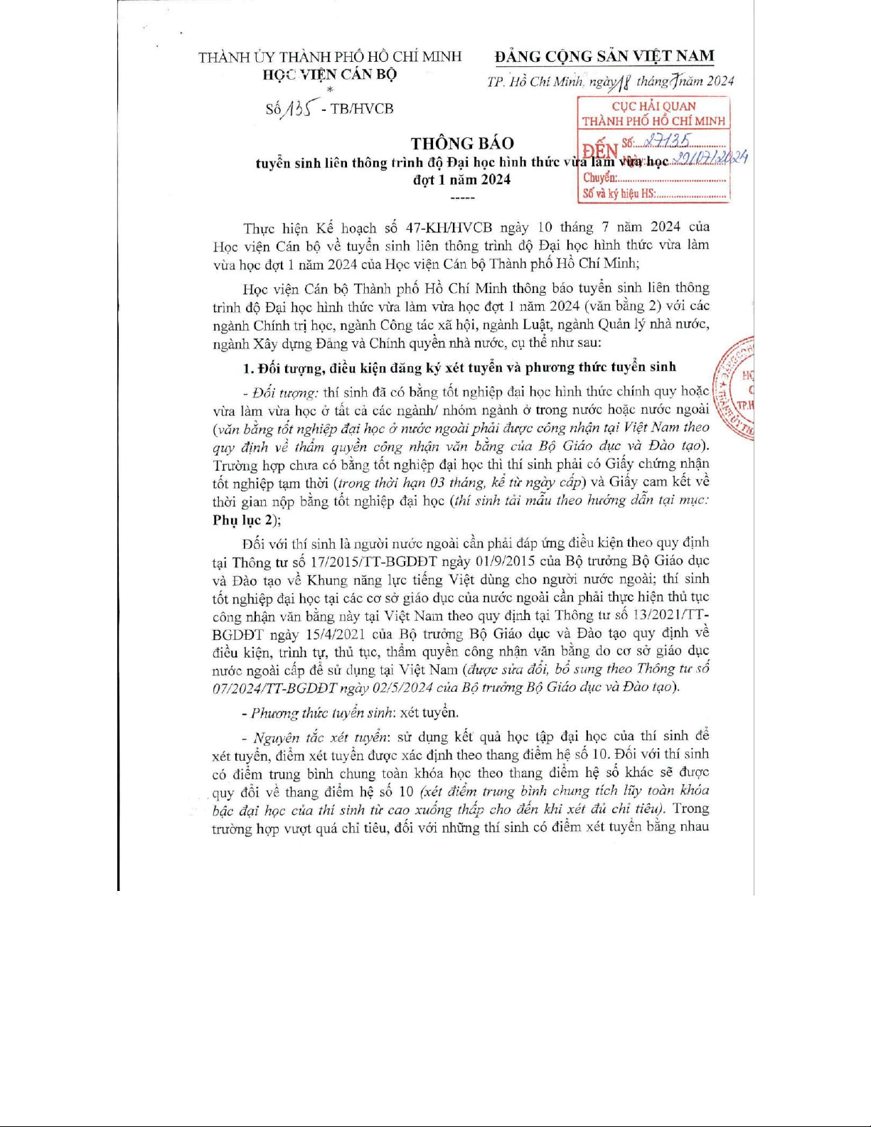 Thông báo Tuyển sinh Liên thông Đại học 2024 - Học viện Cán bộ TP.HCM