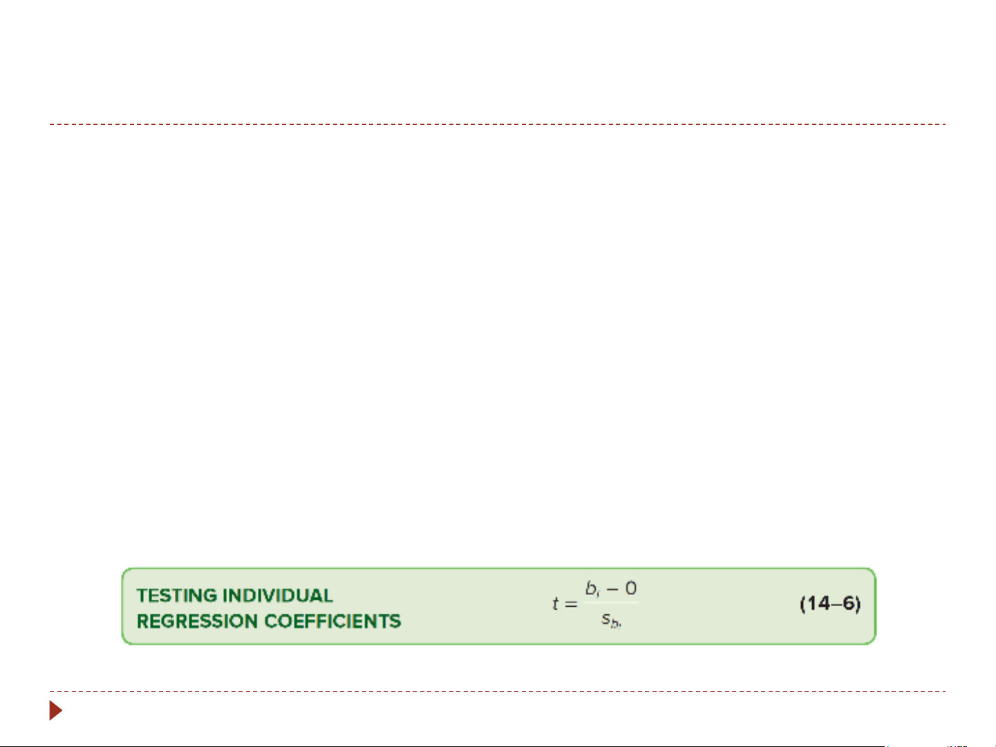 The test statistic is the t distribution with n – (k +1) degrees of freedom