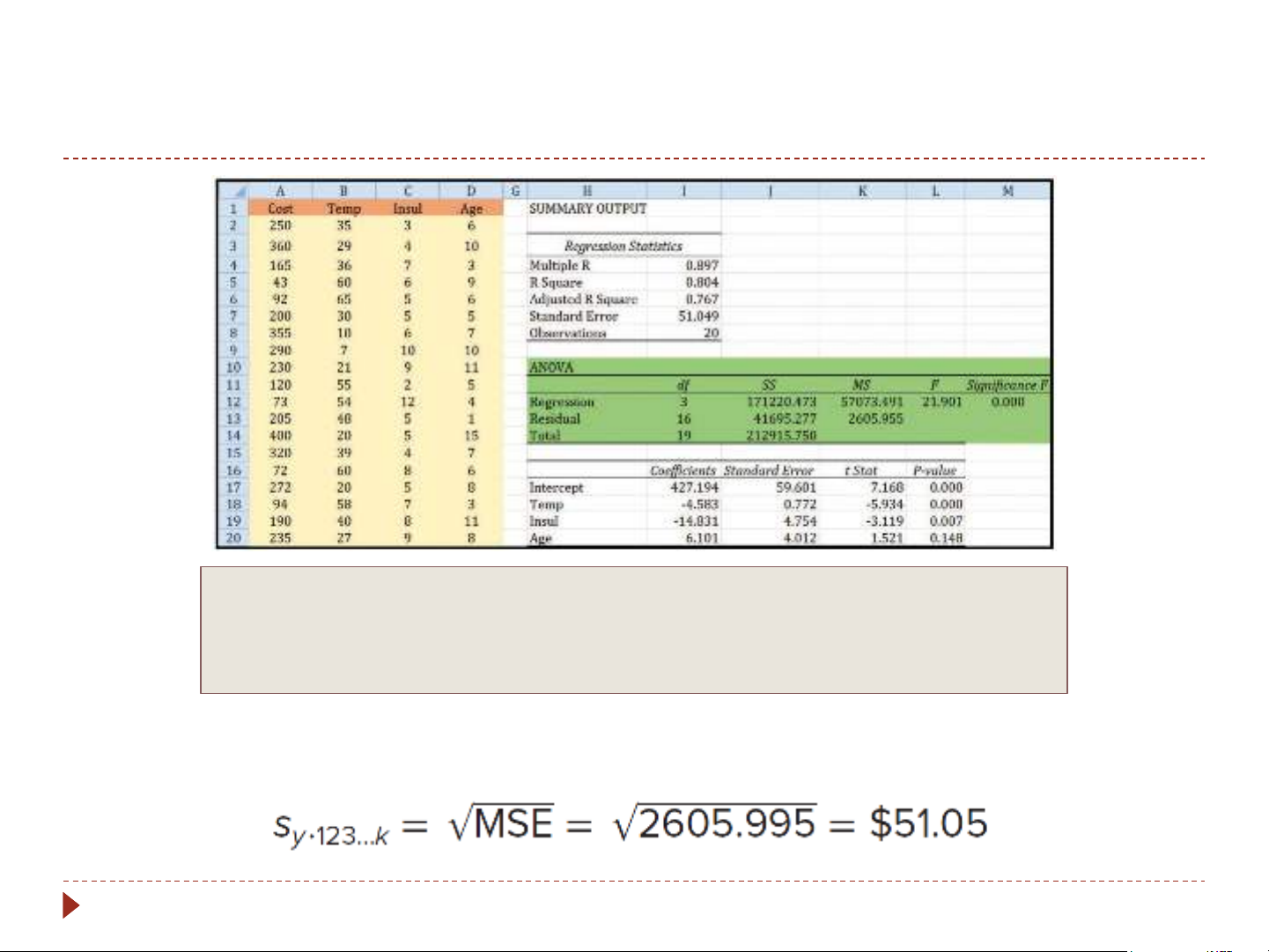 insulation, and the furnace is 10 years old. ොy = a + b x +b x +b x 1 1 2 2 3 3