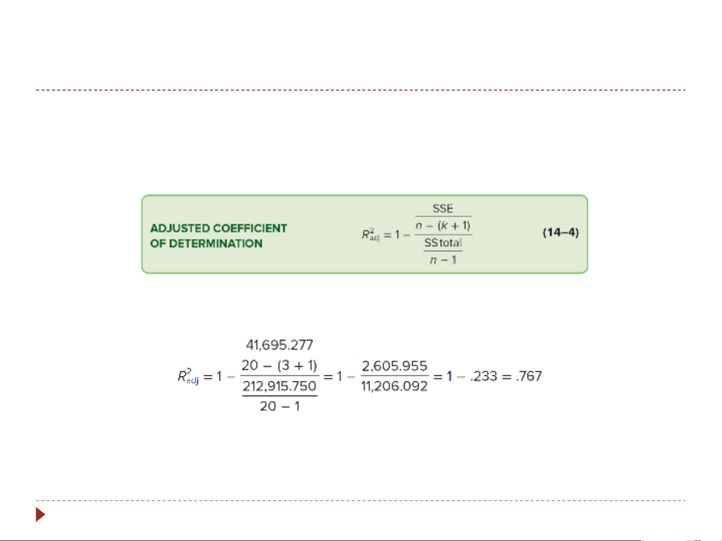 If we compare R2 (0.80) to the adjusted R2 (0.767), the