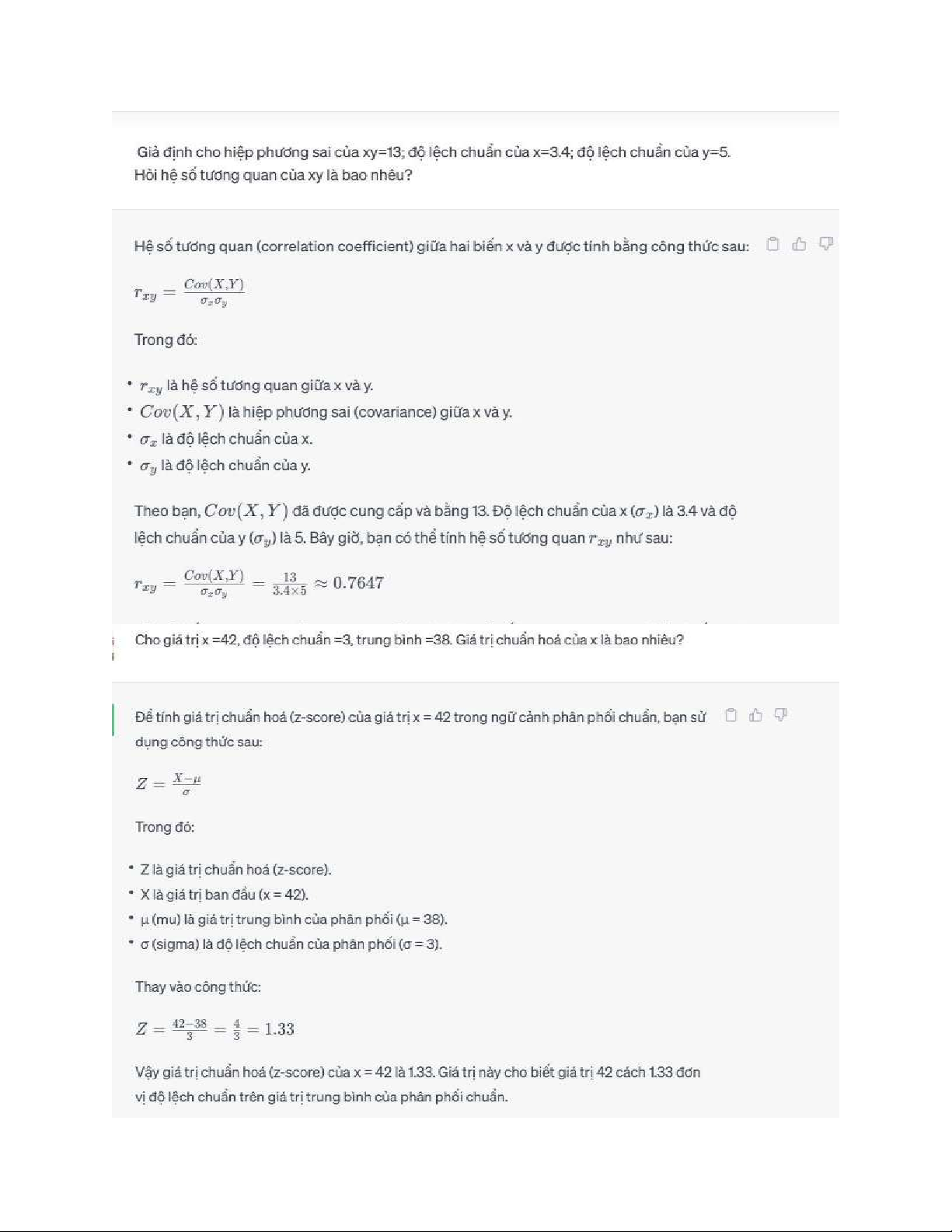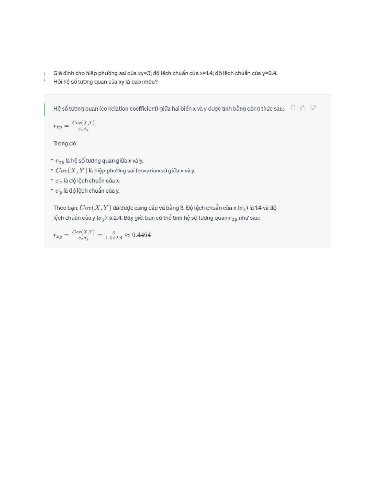 6. Giả định cho hiệp phương sai của xy=3; độ lệch chuẩn của x=1.4; độ lệch chuẩn của y=2.4.