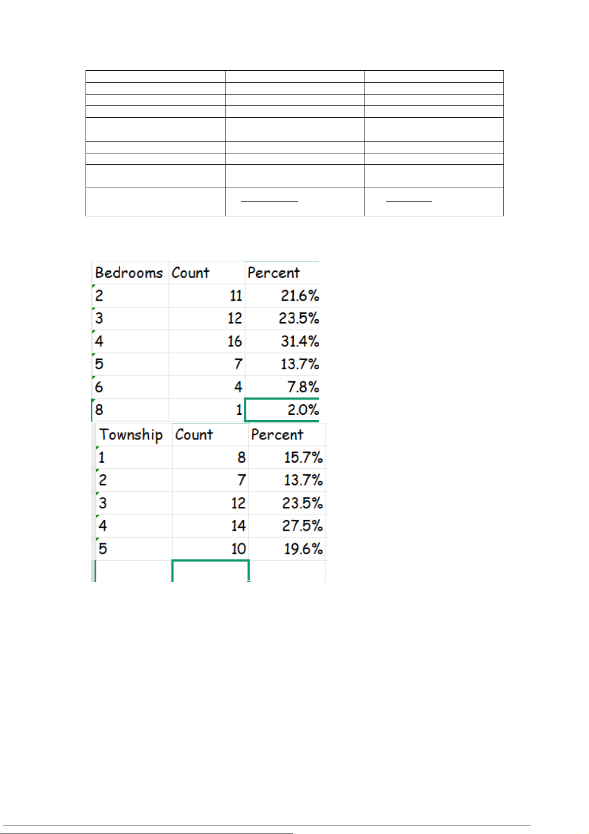 Bảng phân phối tần số cho biến Bedroom và Township: Em sử dụng công cụ Filter để lọc các giá trị