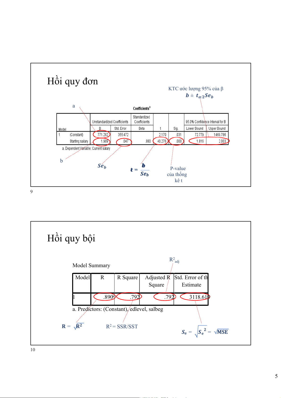 a. Predictors: (Constant), edlevel, salbeg 𝐑 = 𝐑𝟐 R2 = SSR/SST 𝑺 𝟐 𝐞 = 𝑺𝐞 = 𝐌𝐒𝐄 10 5 Hồi quy bội